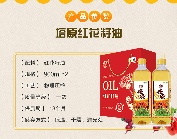 中粮塔原纯正红花籽油礼盒900ml*2