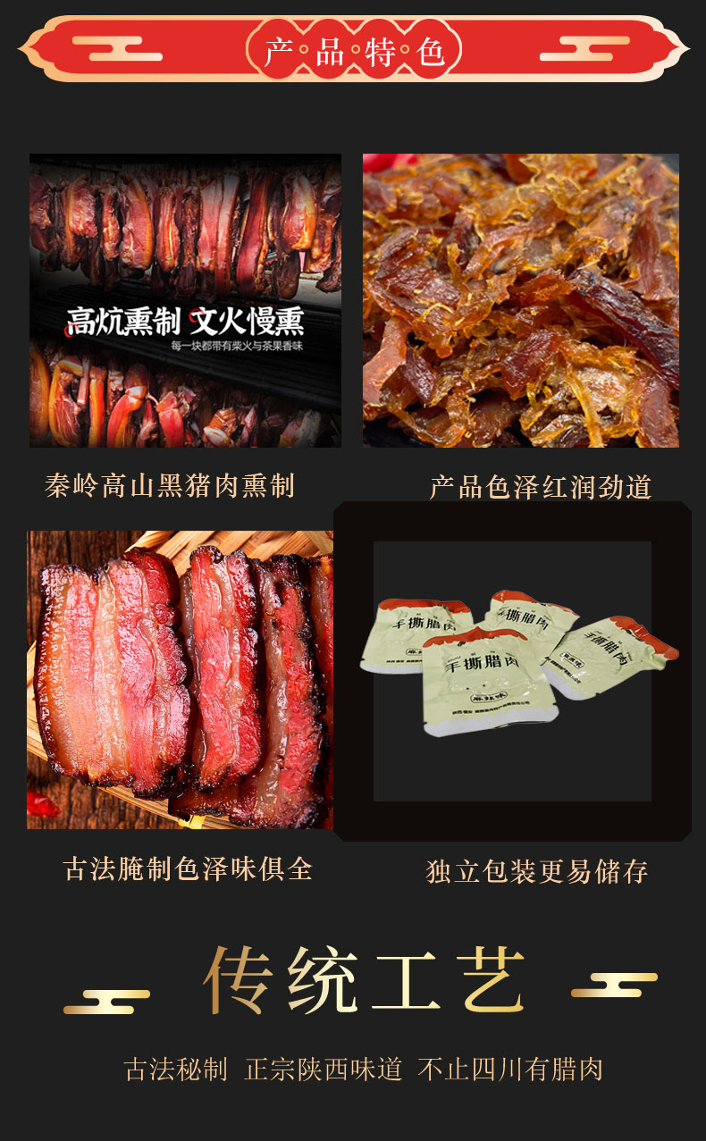 镇安县 手撕腊肉礼盒520g农家自制熏肉腌肉腊肉