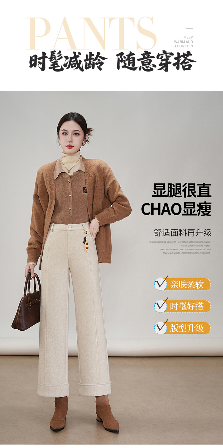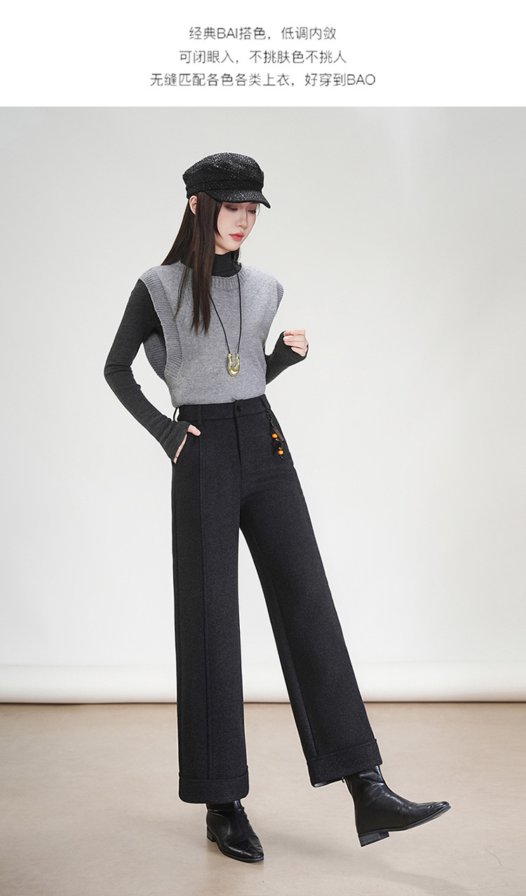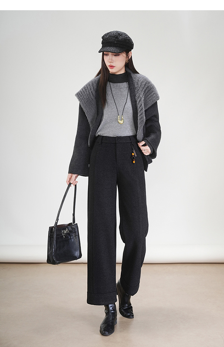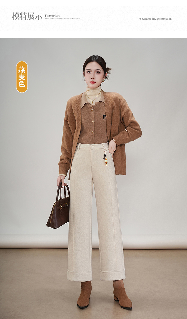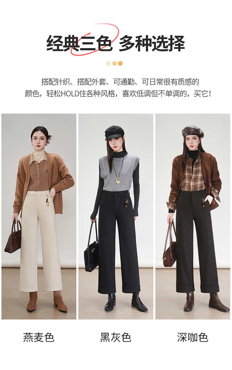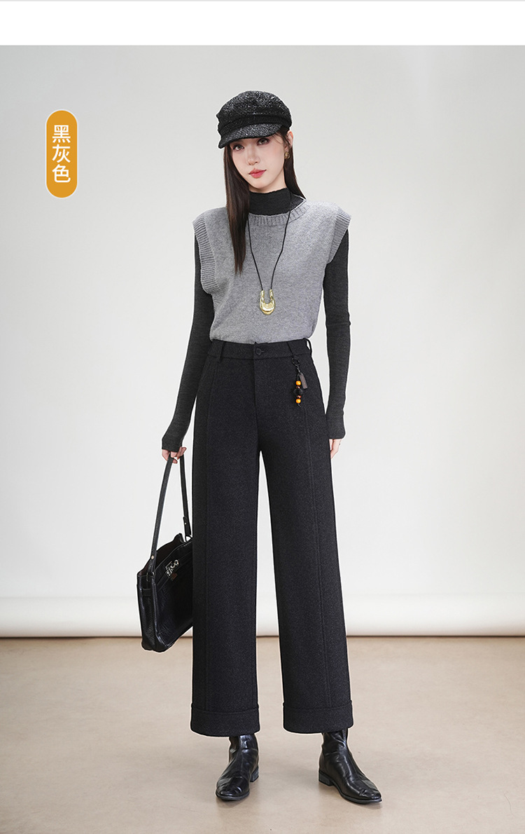 MYX毛呢通勤九分裤垂坠感修身时尚直筒裤2025年冬款遮胯宽松阔腿裤女