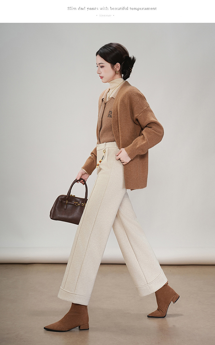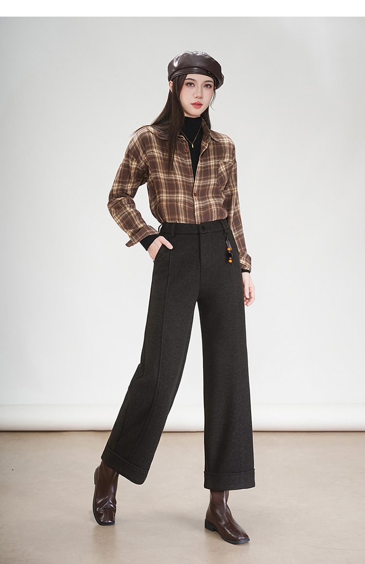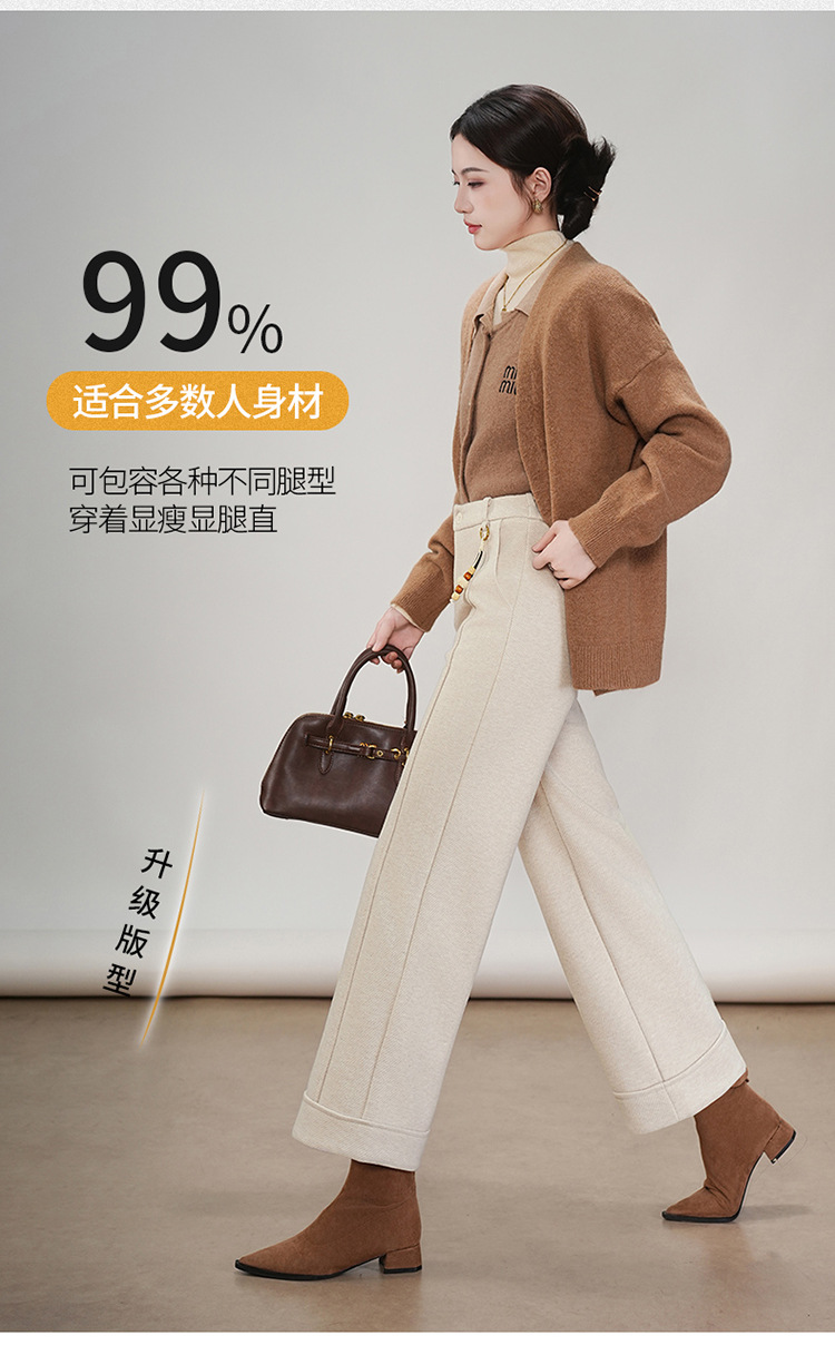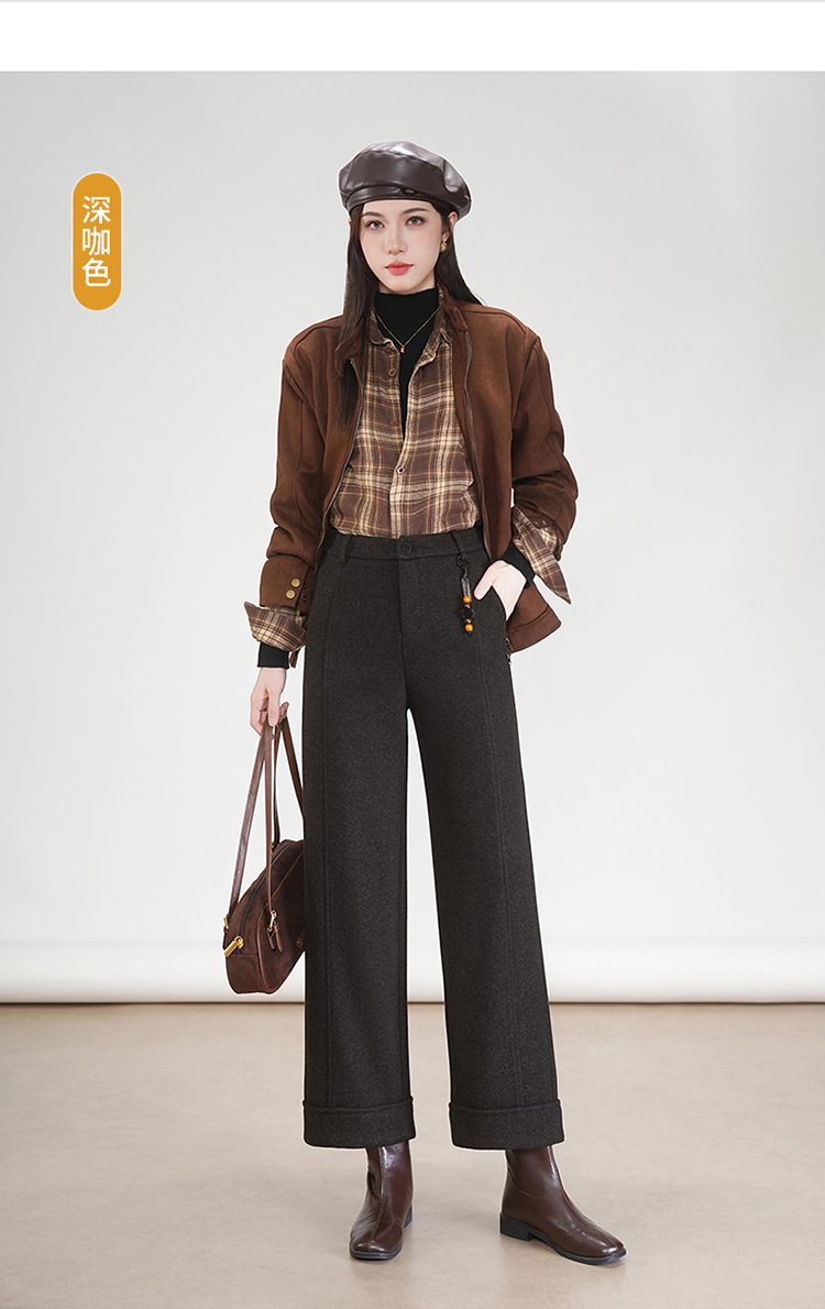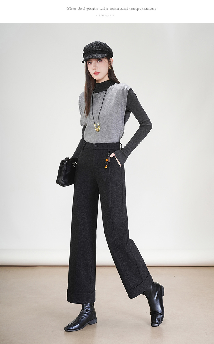 MYX毛呢通勤九分裤垂坠感修身时尚直筒裤2025年冬款遮胯宽松阔腿裤女
