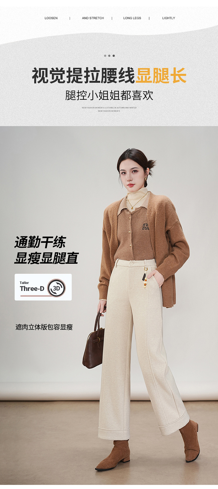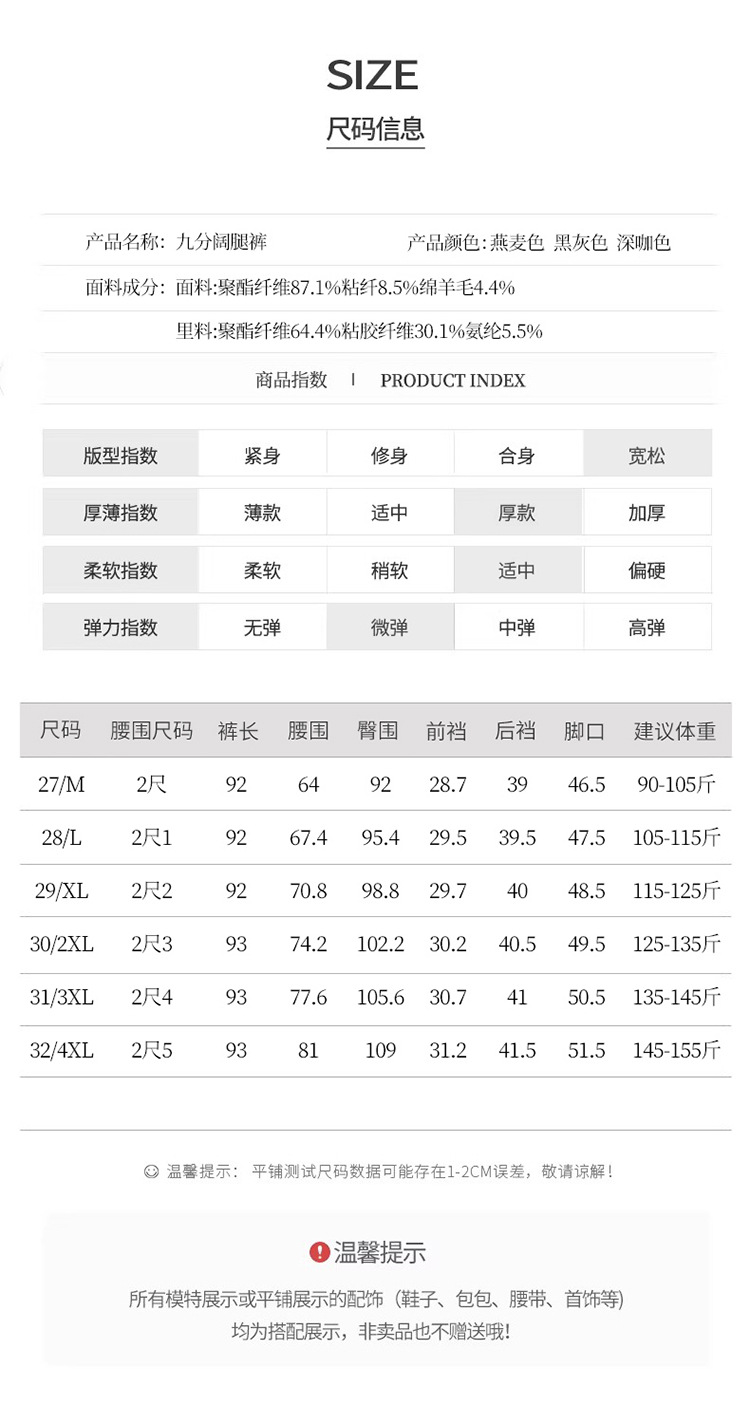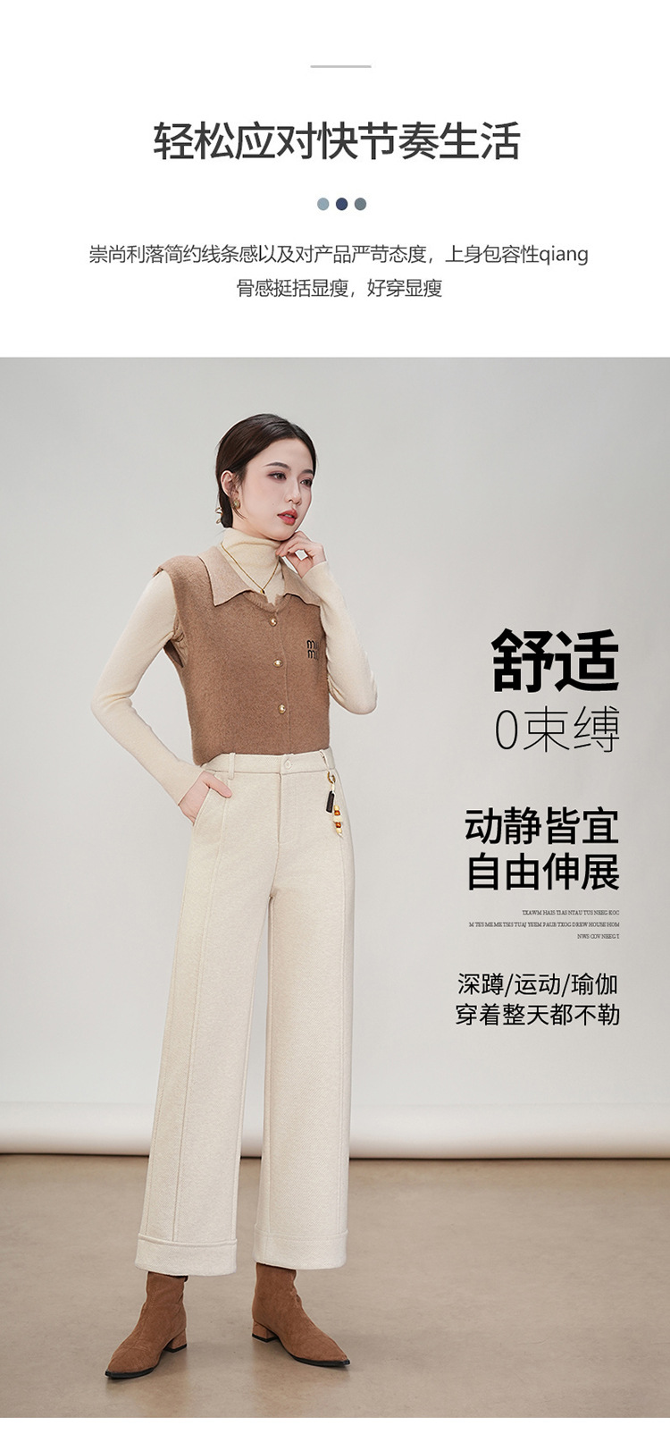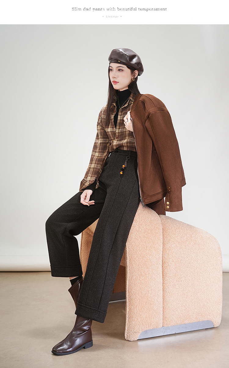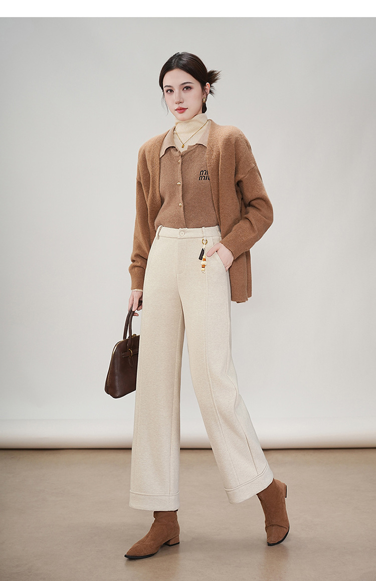 MYX毛呢通勤九分裤垂坠感修身时尚直筒裤2025年冬款遮胯宽松阔腿裤女