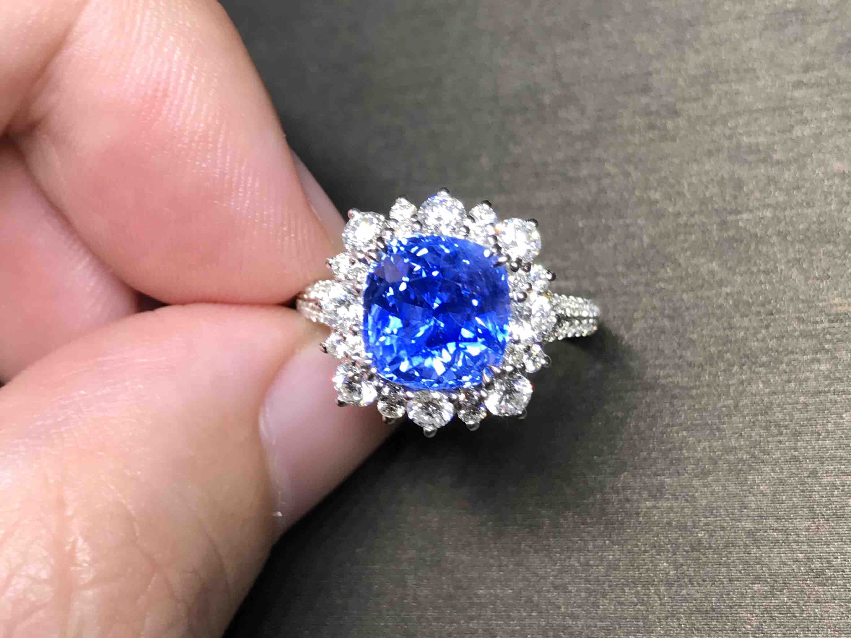 5.05克拉无烧矢车菊 GRS证书蓝宝石戒指