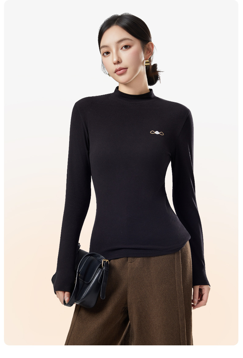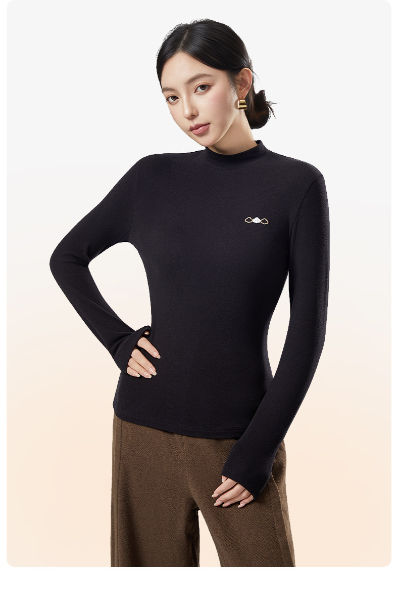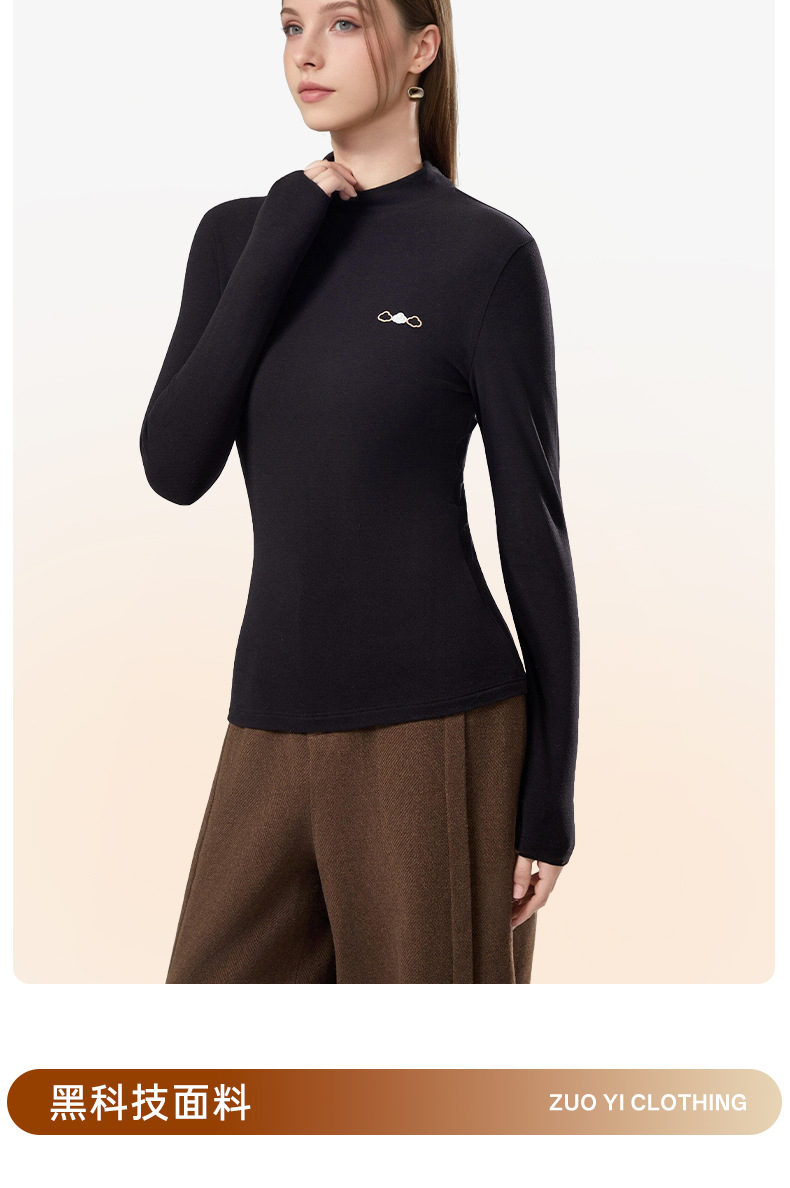 「自」全新升级【铂金会员137/天猫179/差价42】(10456)洛诗琳新款抗菌德绒打底衫2025秋冬时尚百搭刺绣保暖上衣