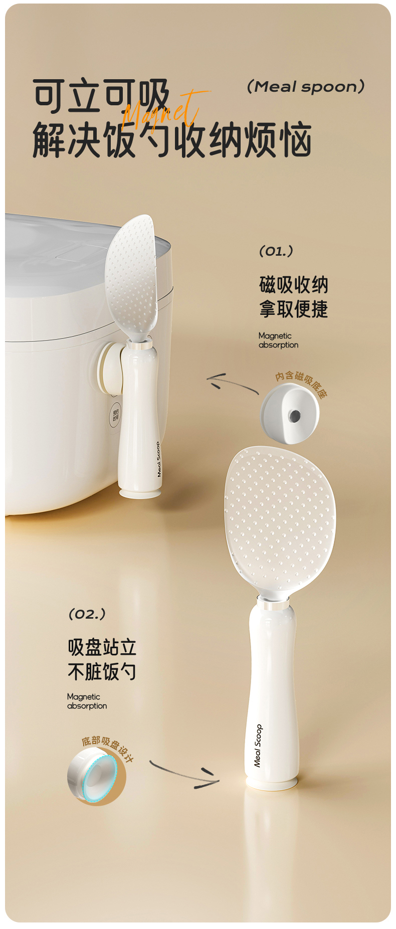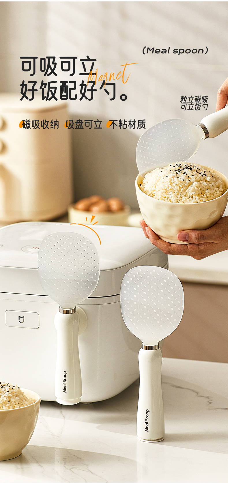 摩登主妇饭勺家用食品级不粘米饭可立式磁吸盛饭勺子电饭煲饭铲子