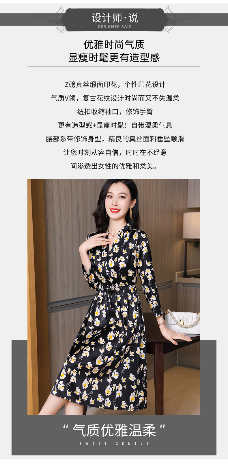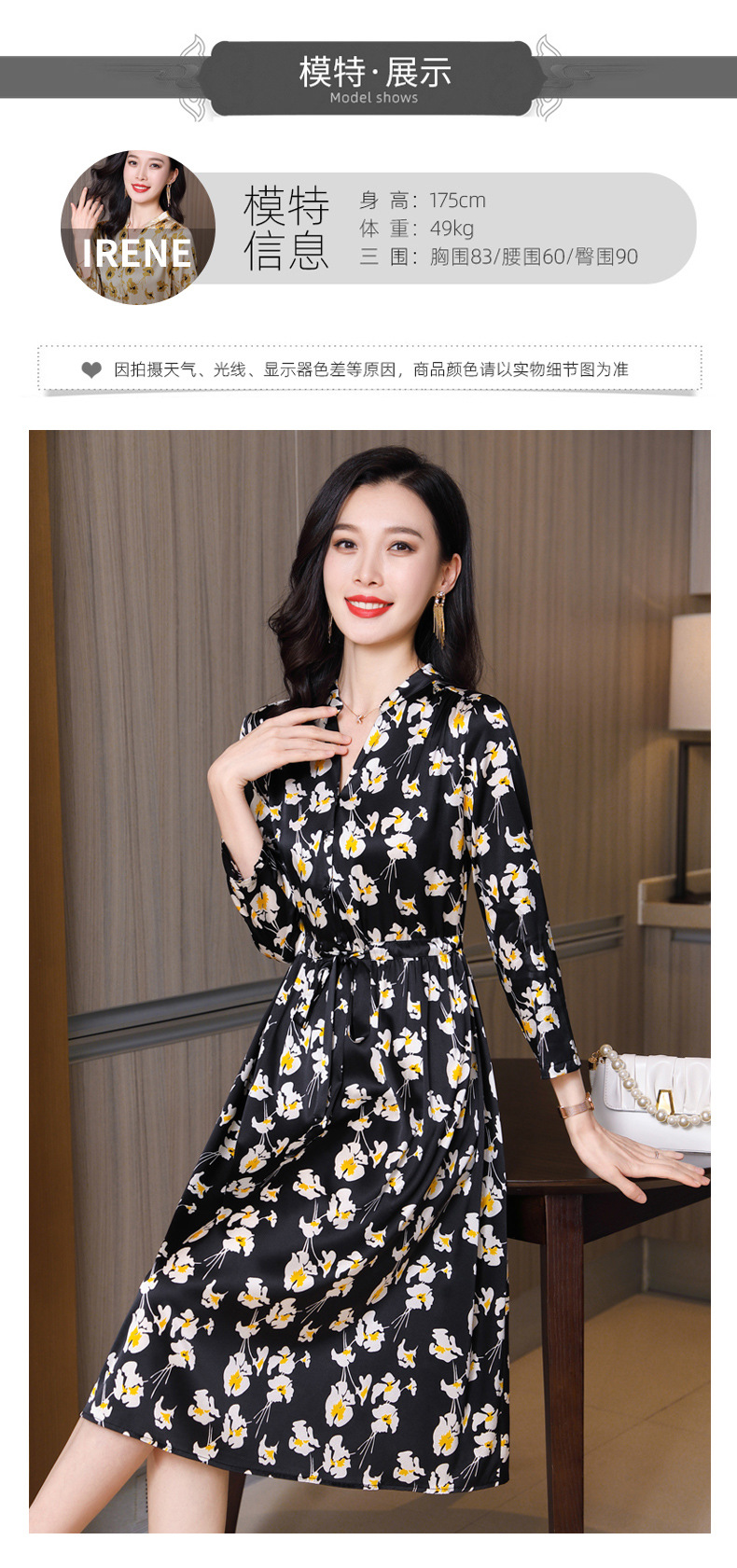 印花时尚气质百搭真丝连衣裙 ASE2352