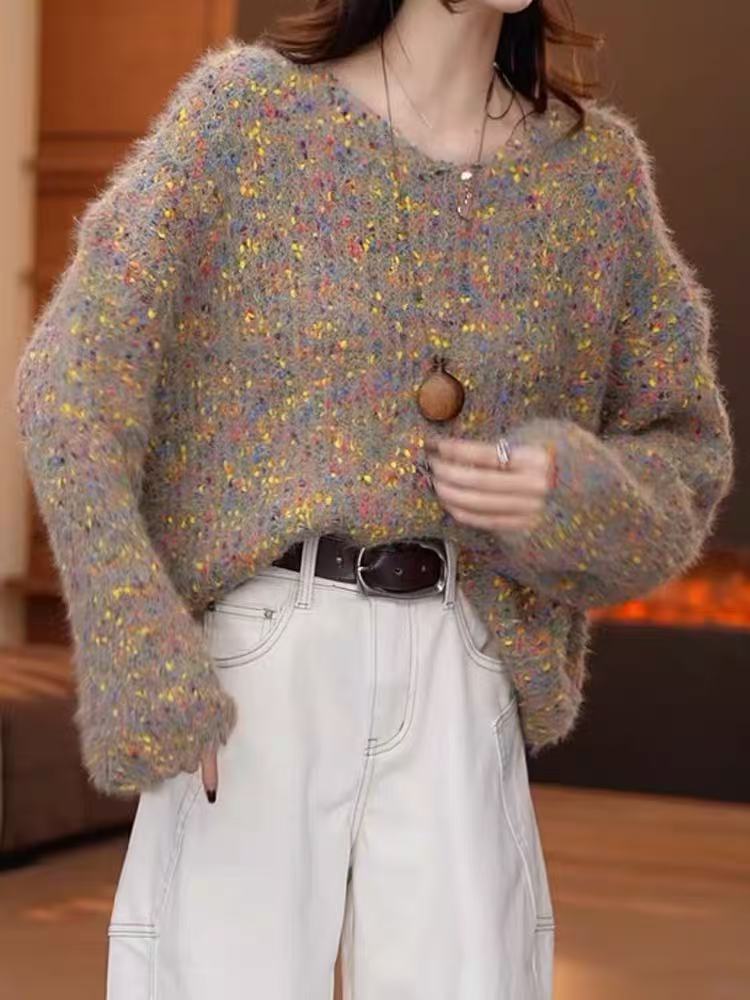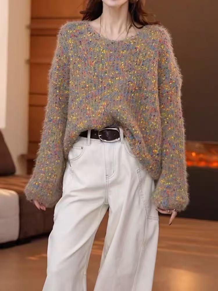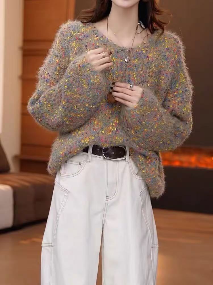 【孤品捡漏】(样衣)G85-1慵懒风彩点宽松毛衫-喜出