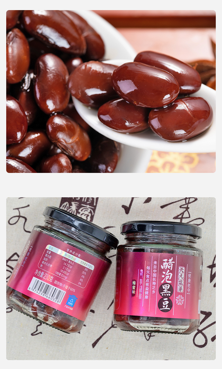 【中国长寿之乡-封丘特产】天元醋泡黑豆 醋泡生姜 盖即食 古法工艺 230g*2瓶 (醋泡黑豆 无蔗糖、蜂蜜)
