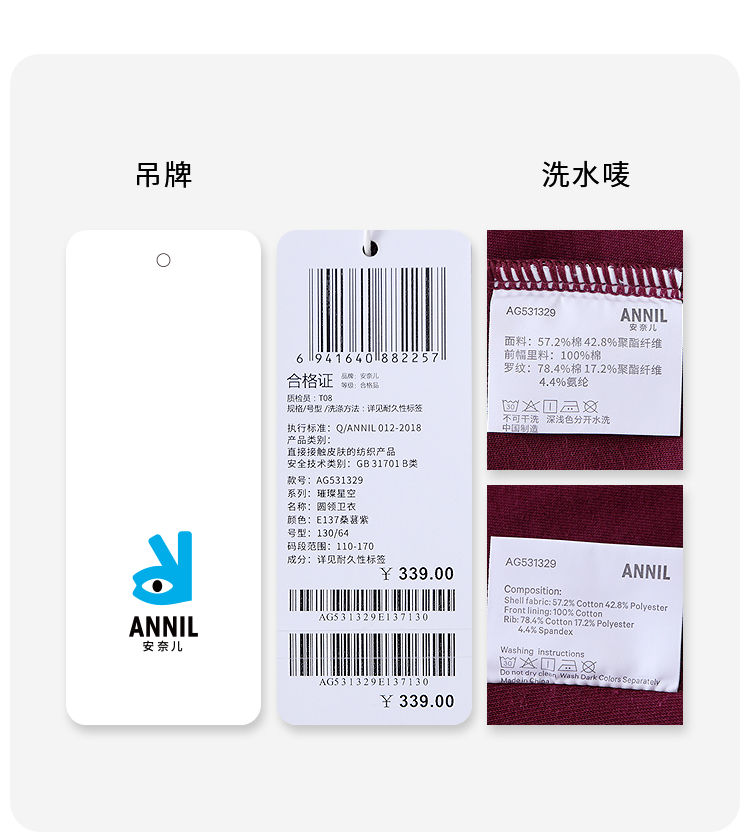 【实体店同款】女童圆领卫衣秋季新款安奈儿童装AG531329