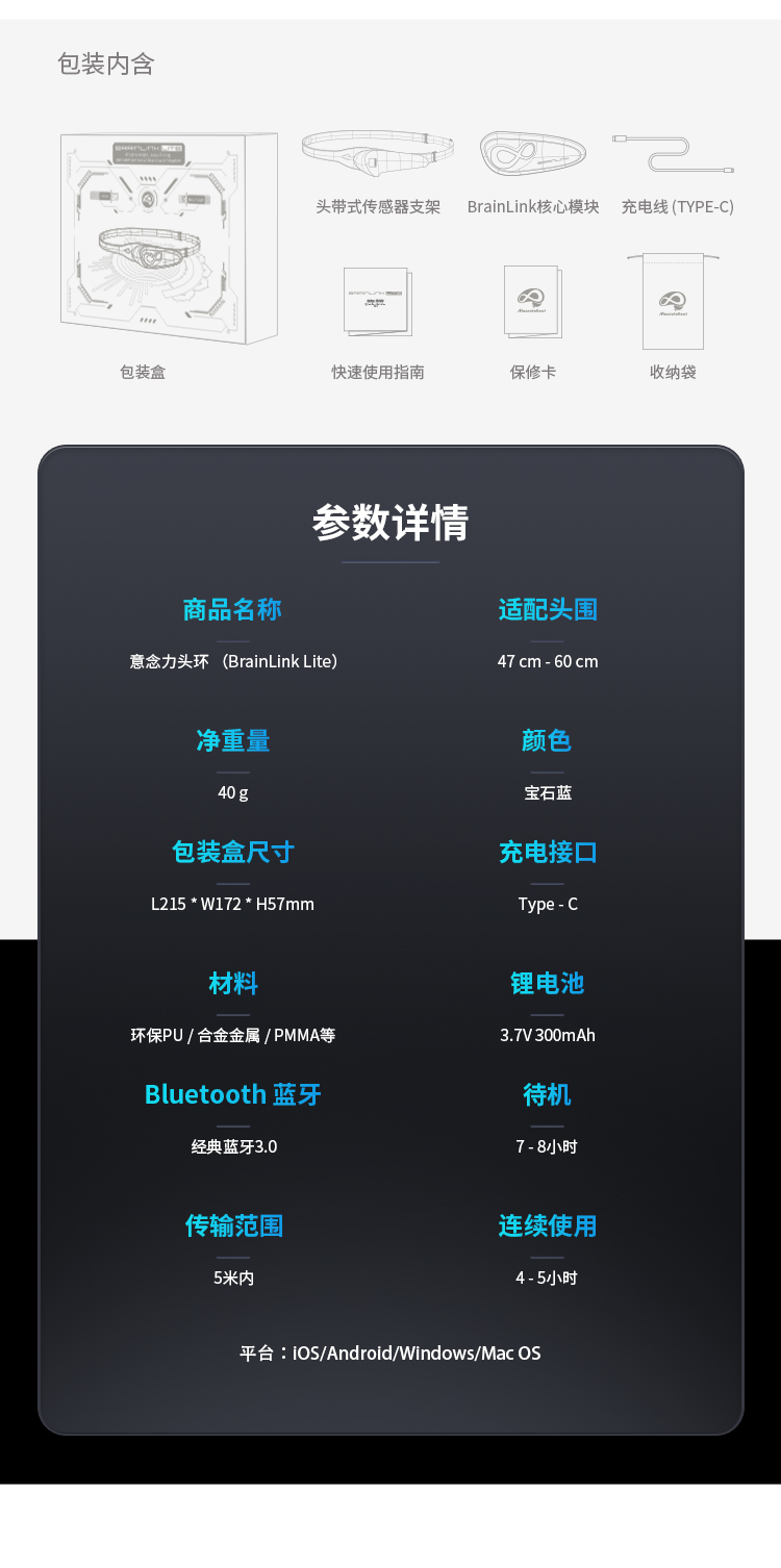 W2003 BrainLink 智能脑波头环Lite 脑环 冥想提升专注力 瑜伽调息法