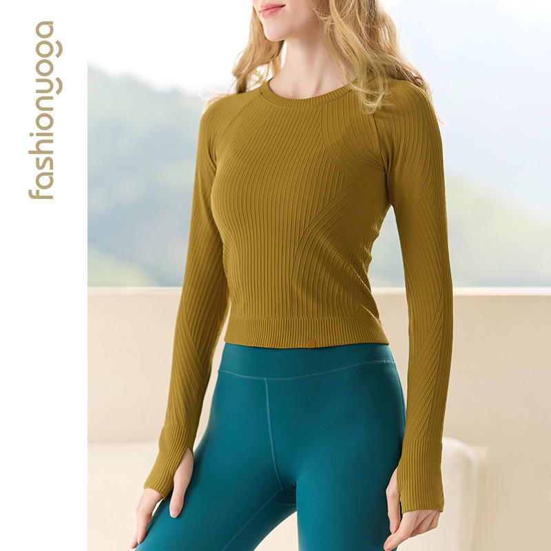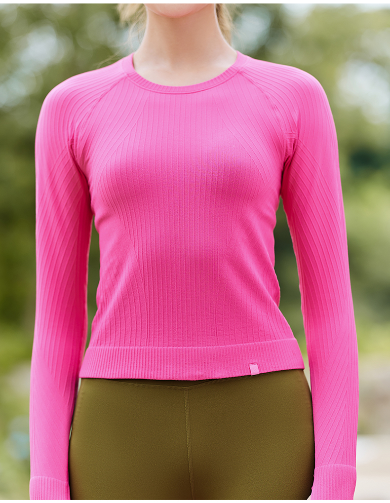 【双11折上折】凡圣瑜伽Q弹条纹一体织长袖(不含胸垫)F12383(收货7天内支持同款换货、不退款)