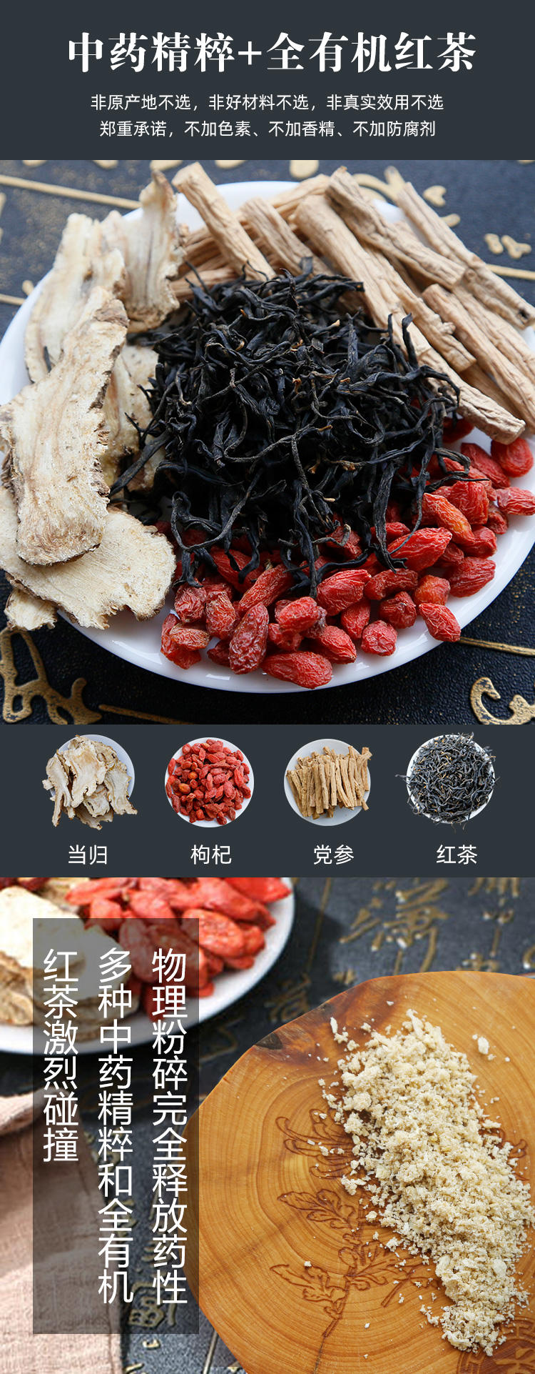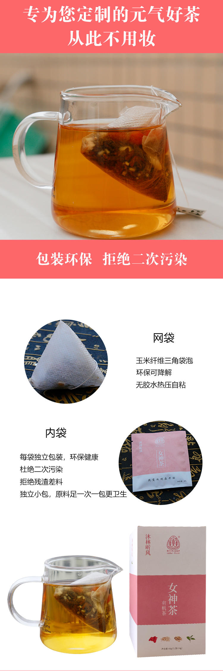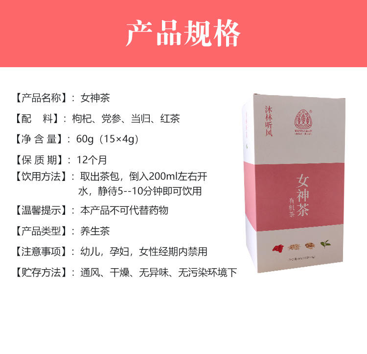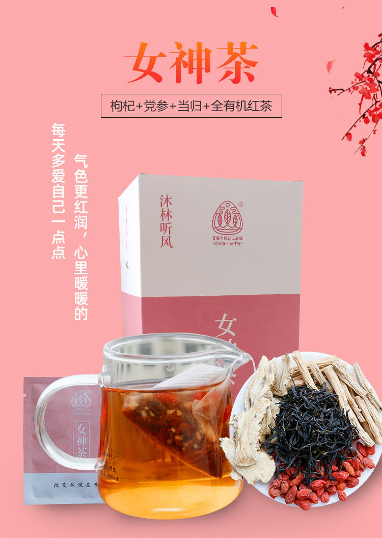 沐林听风 女神茶枸杞党参当归全有机红茶养生花草茶(15包装)