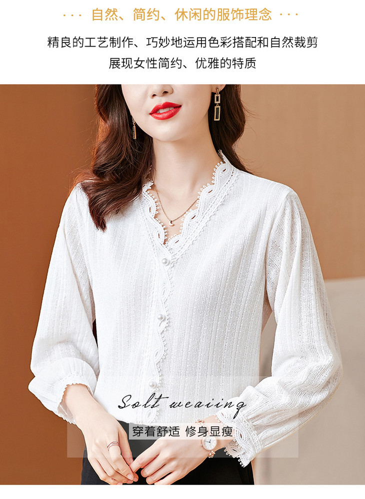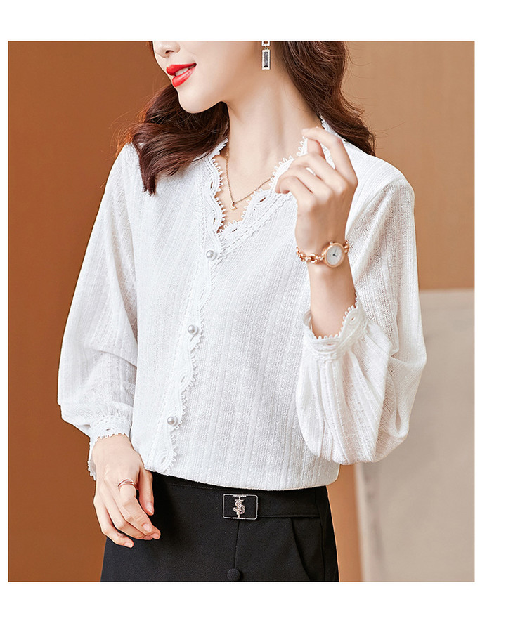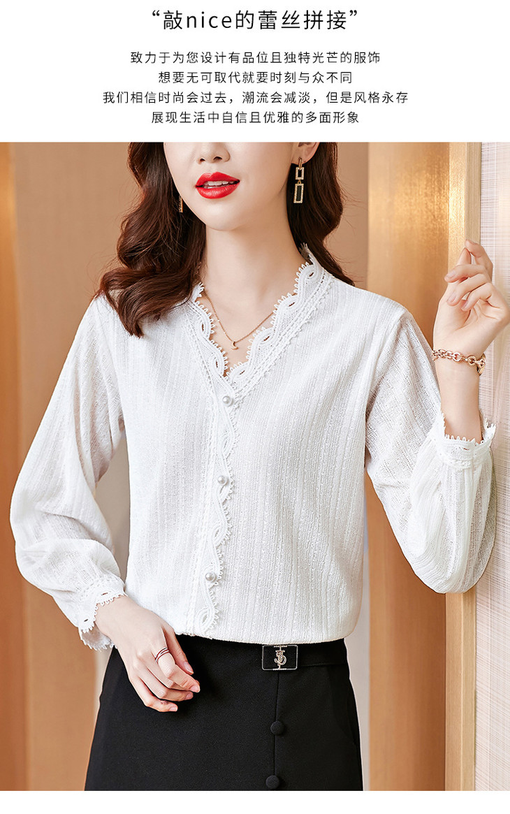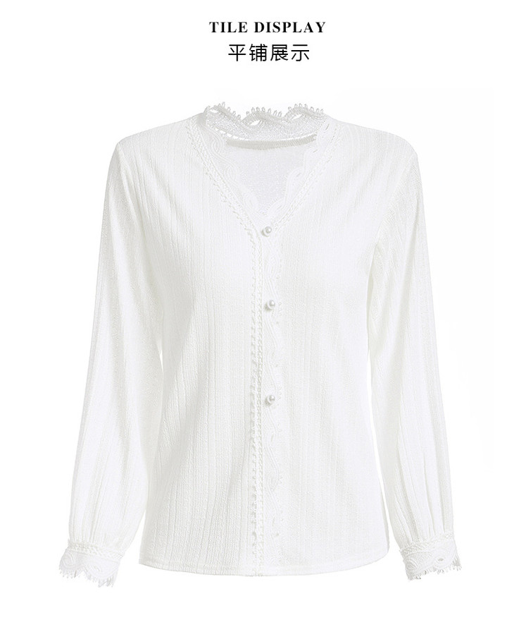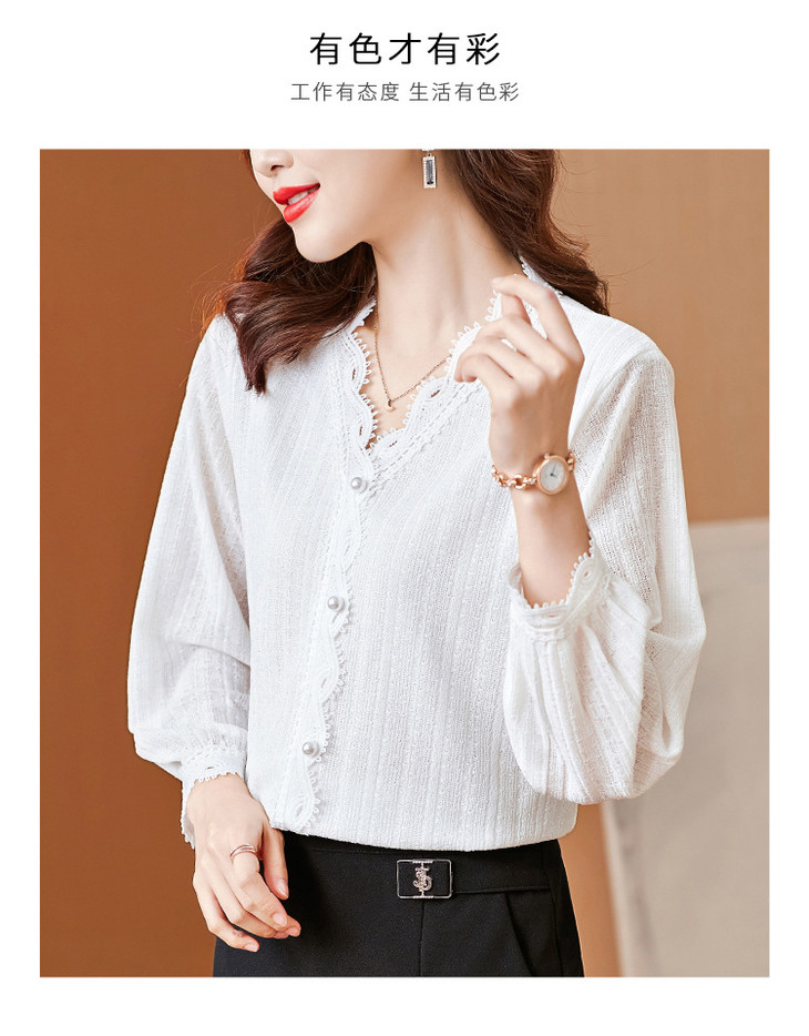 MZ 116202翻领花边蕾丝拼接衬衣遮肉显瘦