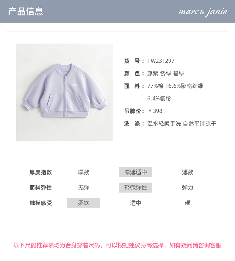 【3D空气棉】马克珍妮秋装新款男女童运动棒球服外套231297