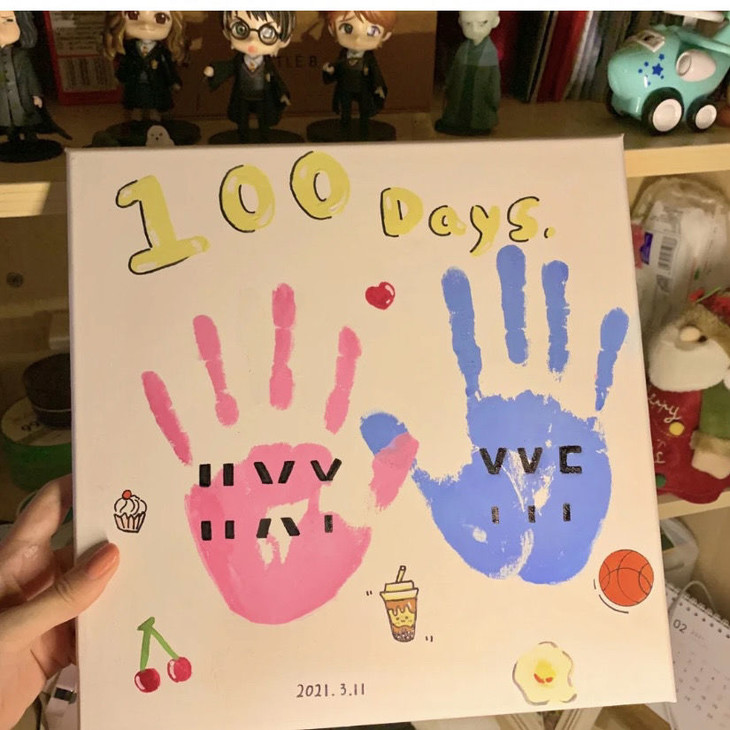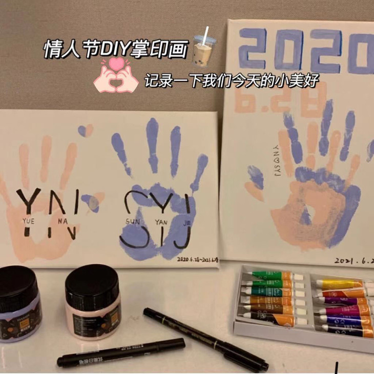 DIY手印纪念画手工画七夕情人节礼物纪念日送女朋友情侣闺蜜油画