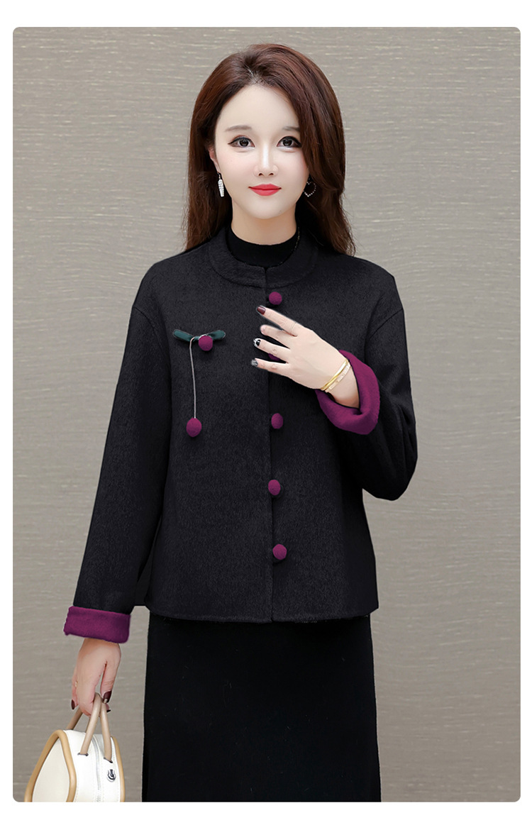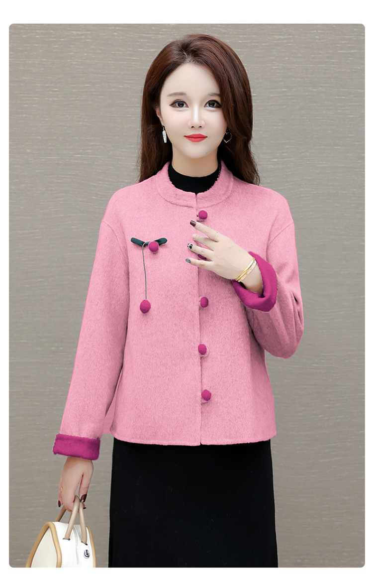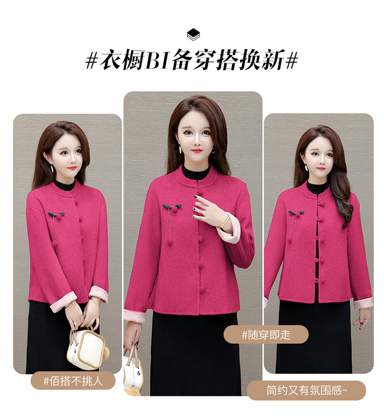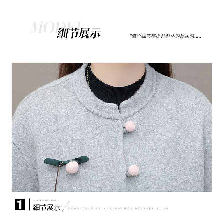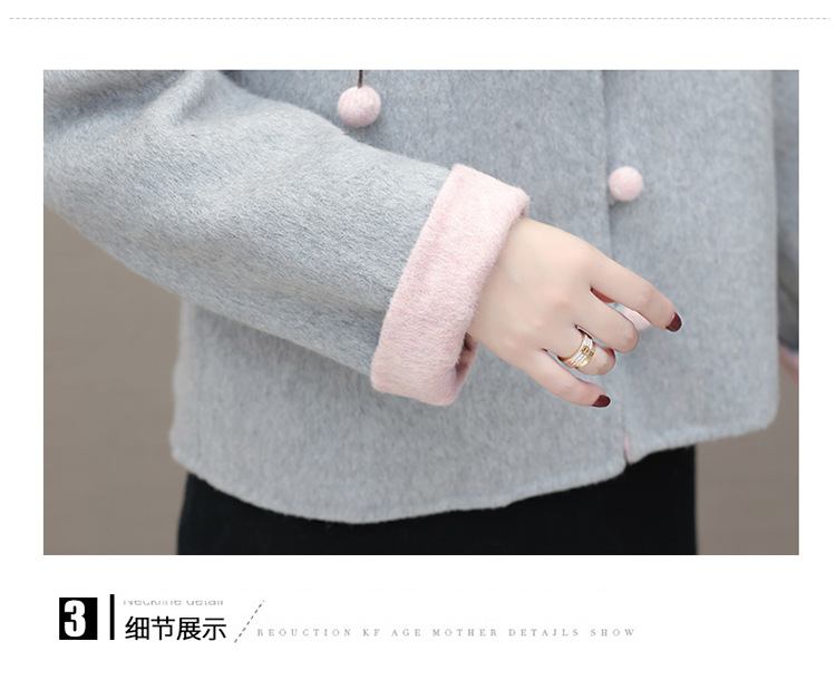 QYM 5277CL1928-Y时尚双面呢子大衣圆领短款毛呢外套时尚复古盘扣上衣 商品图4