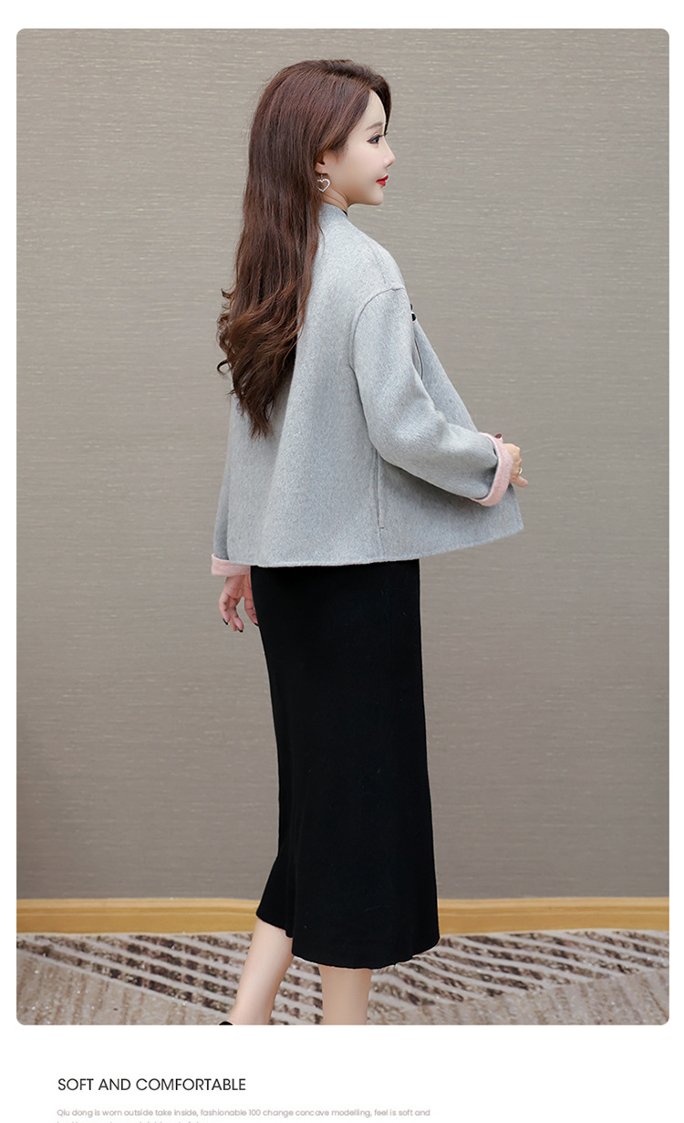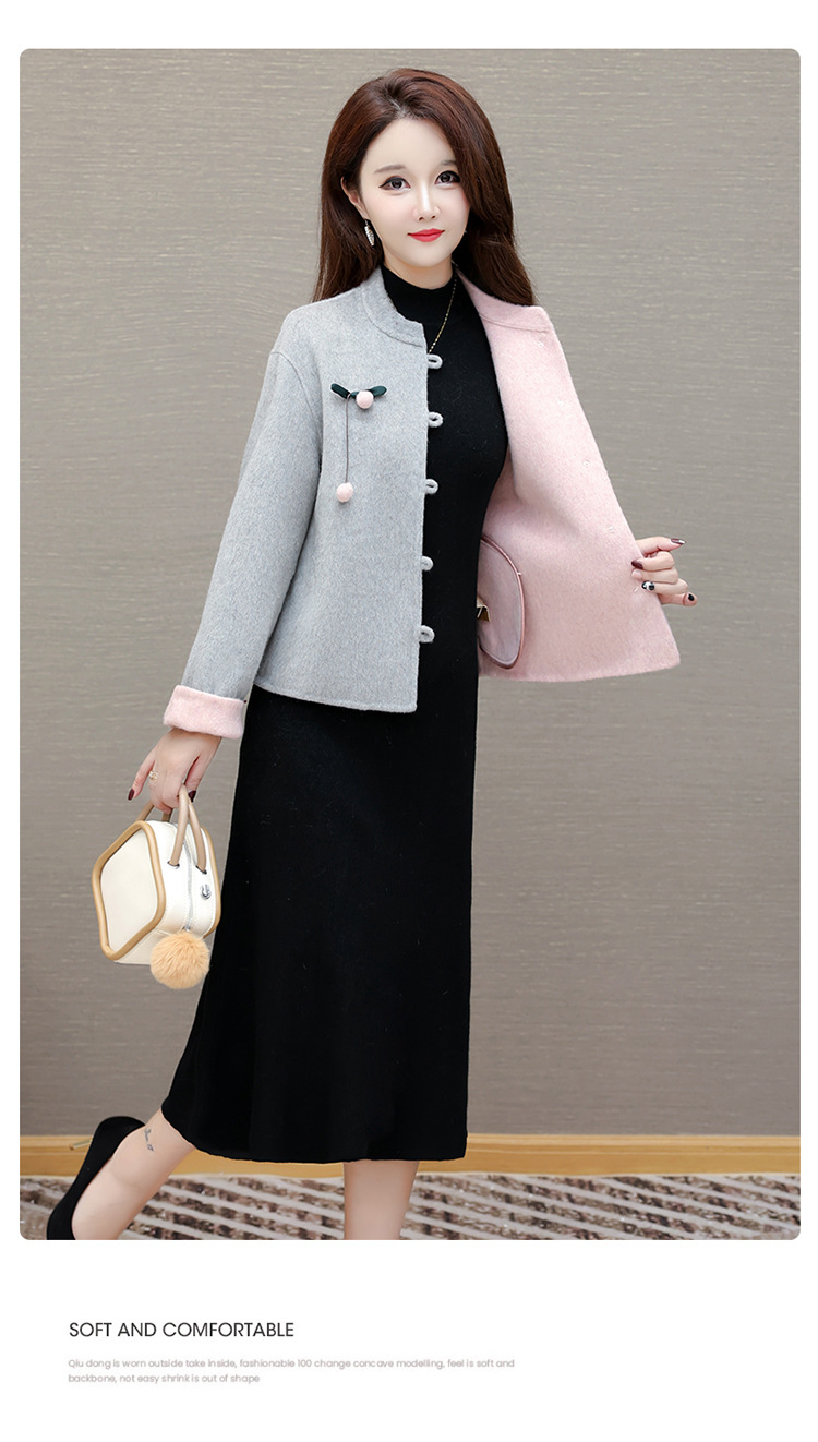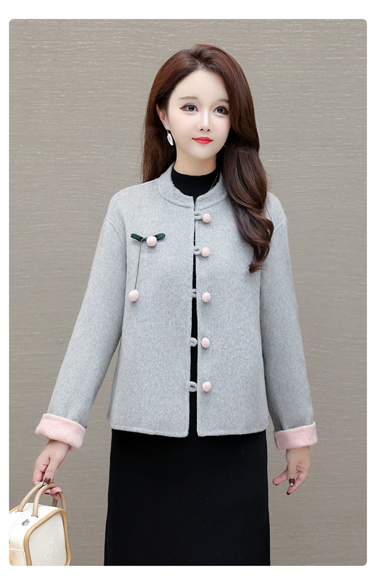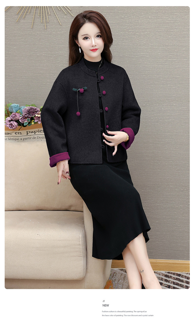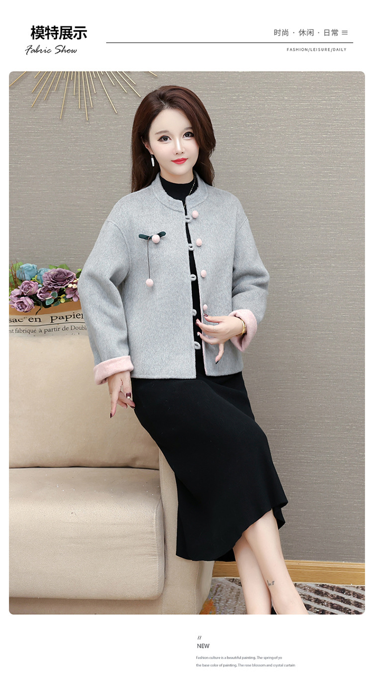 QYM 5277CL1928-Y时尚双面呢子大衣圆领短款毛呢外套时尚复古盘扣上衣 商品图3