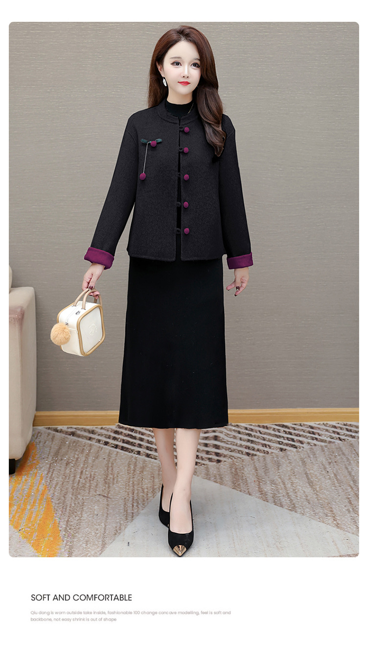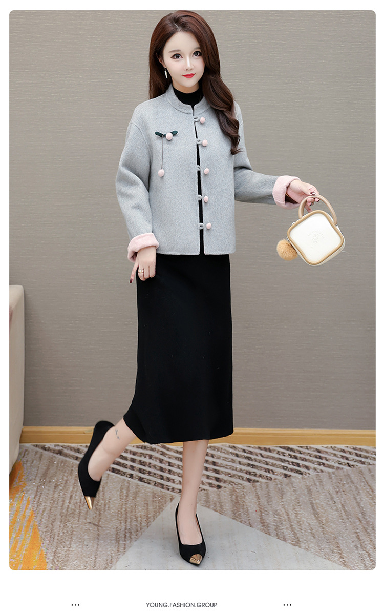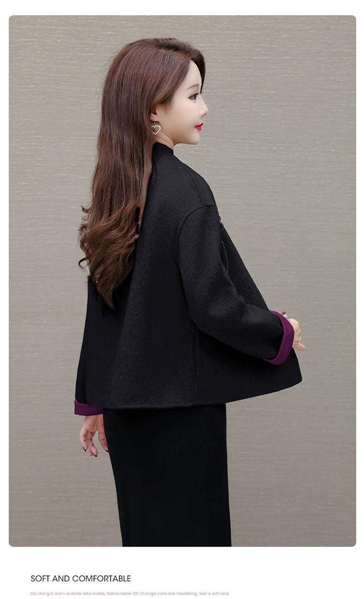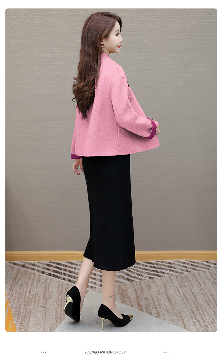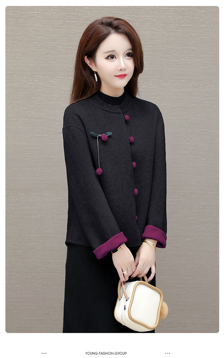 QYM 5277CL1928-Y时尚双面呢子大衣圆领短款毛呢外套时尚复古盘扣上衣 商品图3