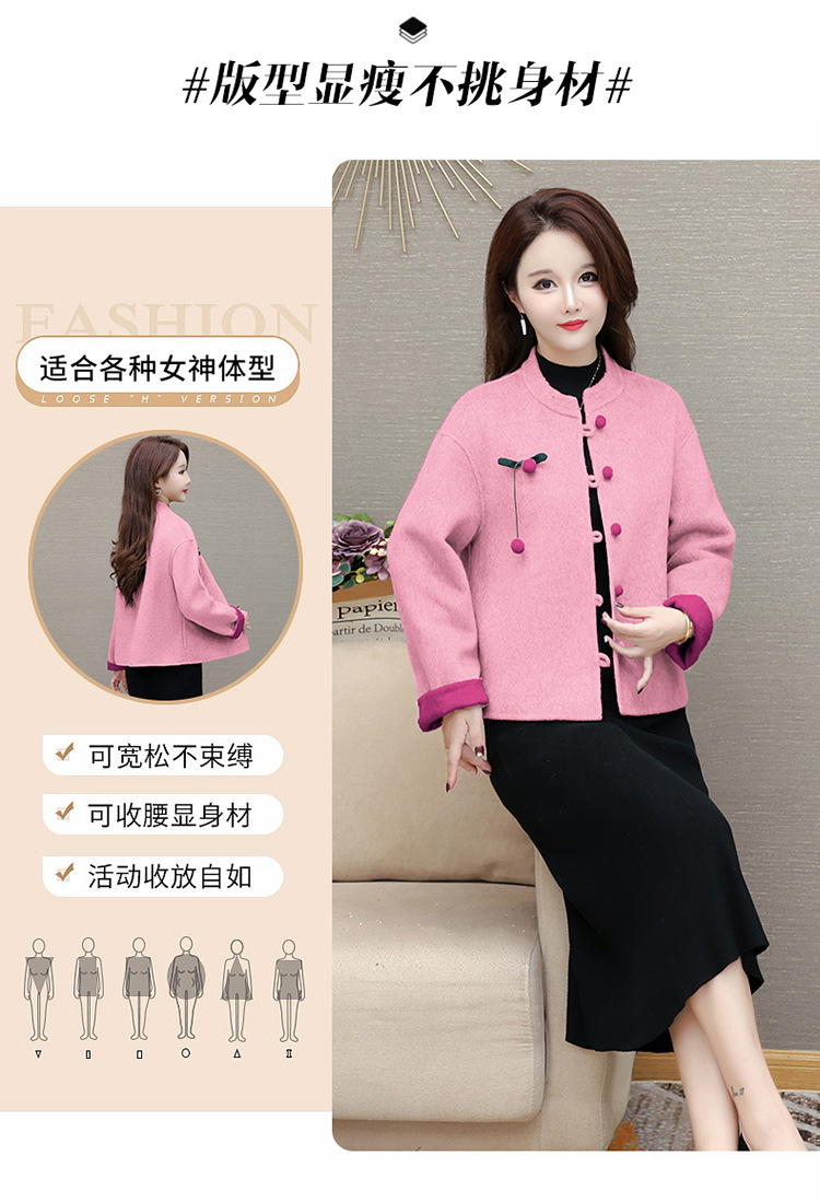 QYM 5277CL1928-Y时尚双面呢子大衣圆领短款毛呢外套时尚复古盘扣上衣 商品图2