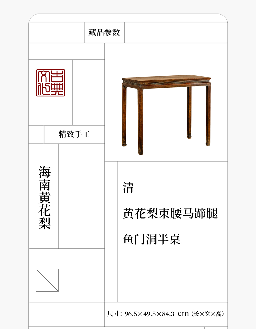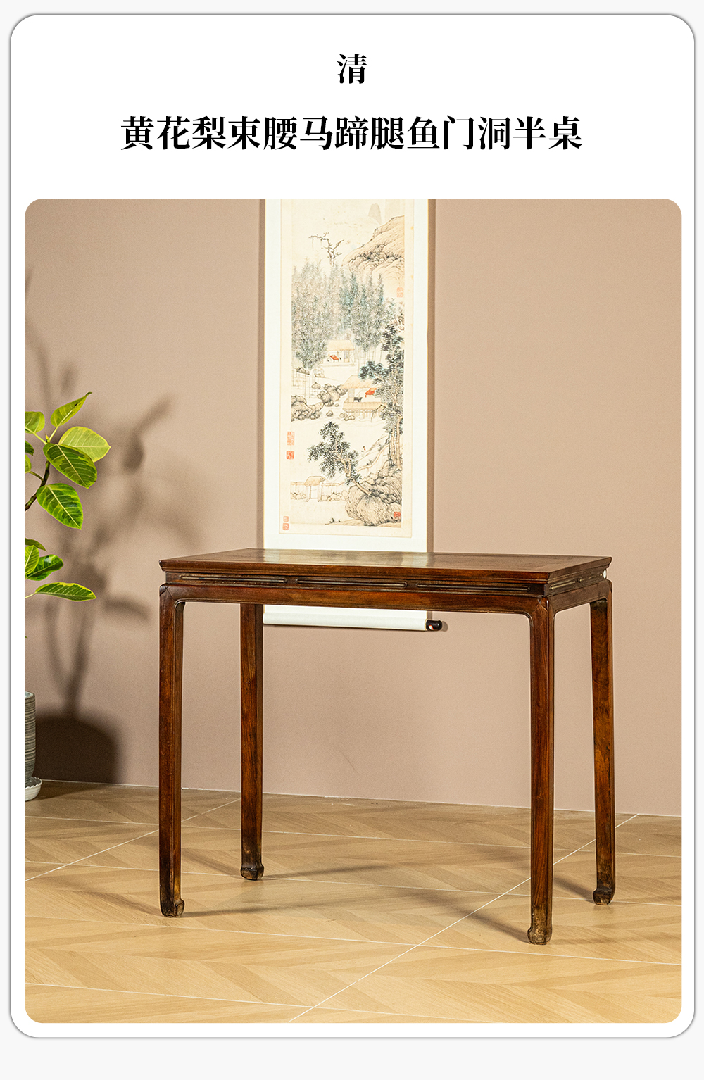 清 黄花梨束腰马蹄腿鱼门洞半桌