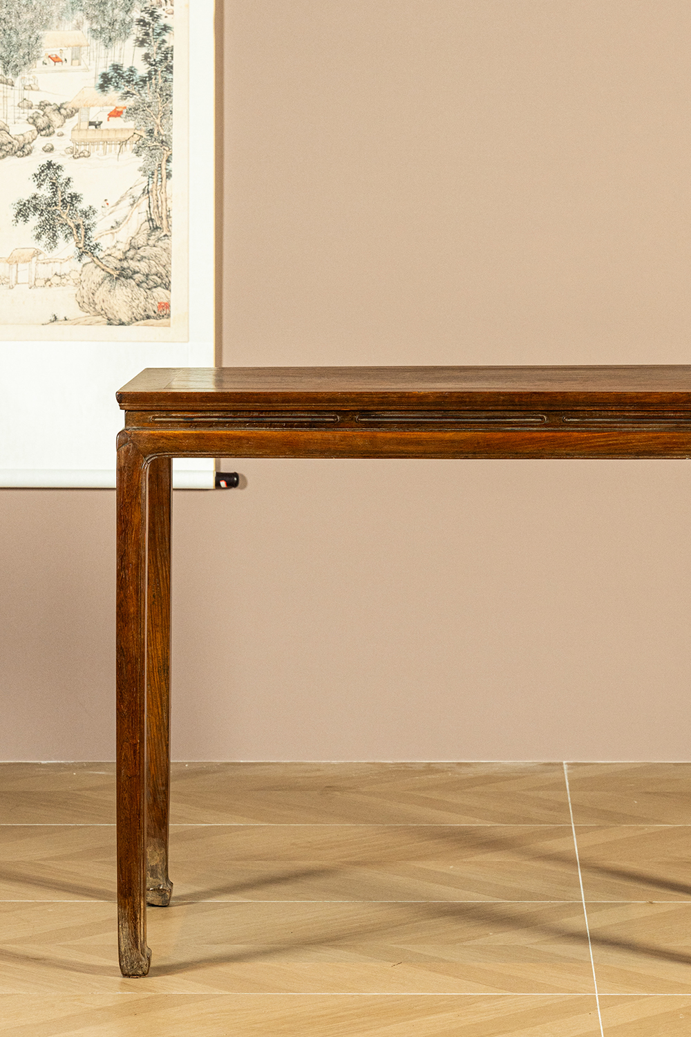 清 黄花梨束腰马蹄腿螭龙纹画桌