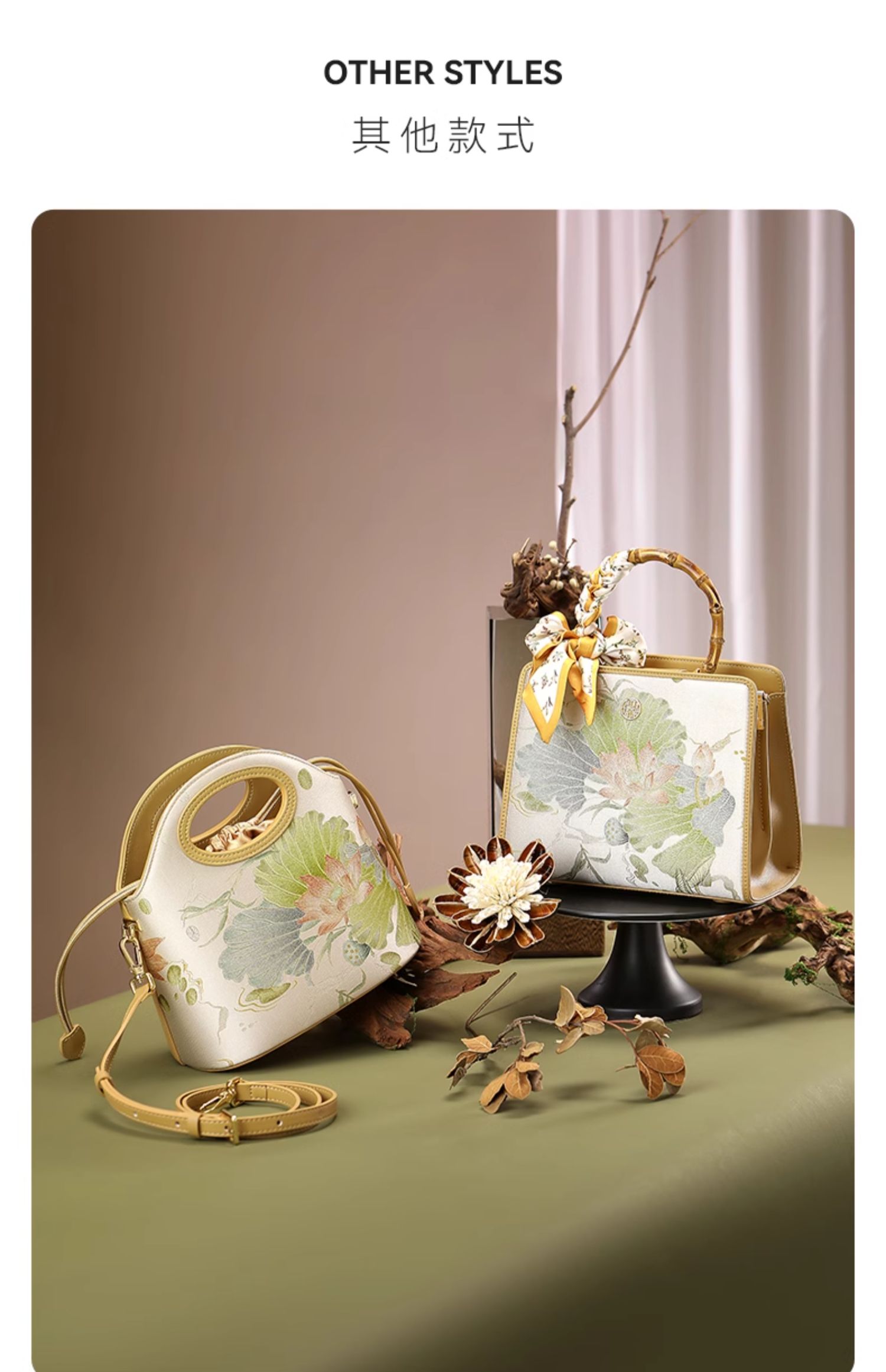 新中式国风桑蚕丝印花提花工艺,高级感单肩斜挎手提包TX-LD120505