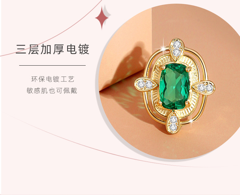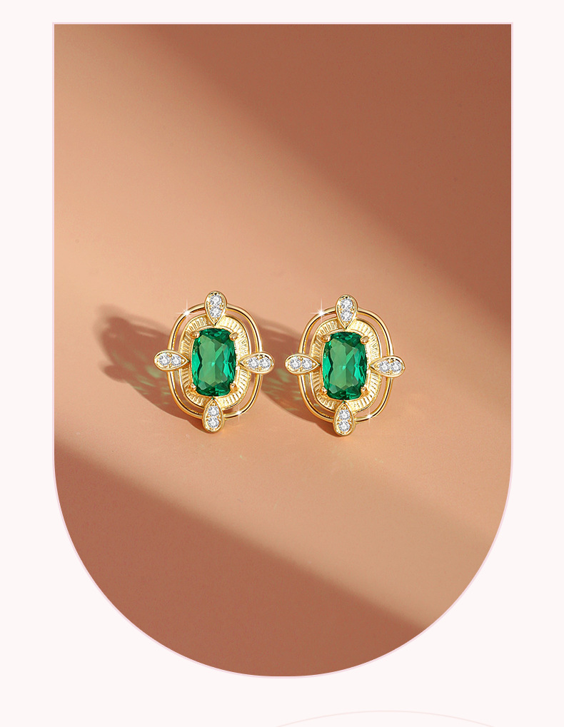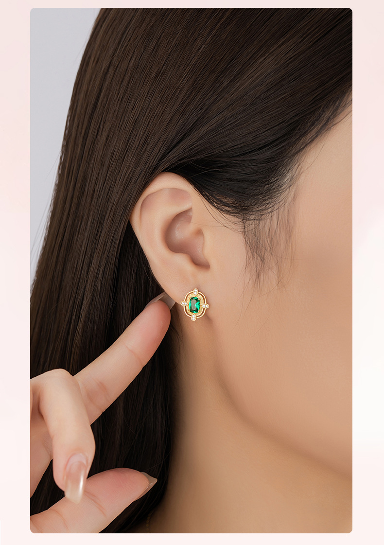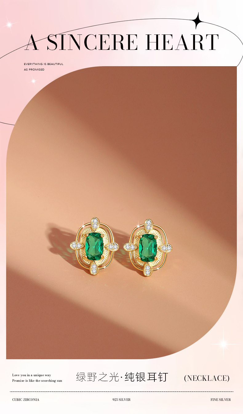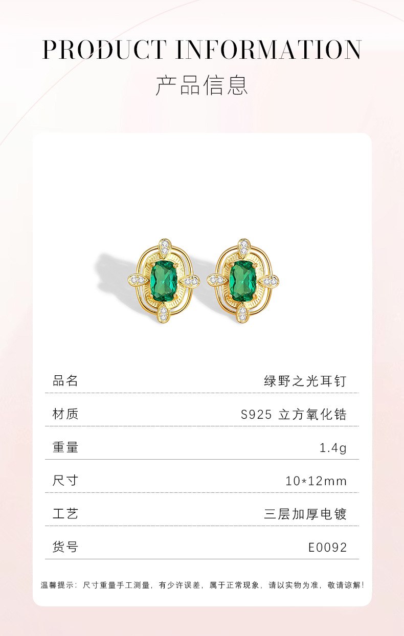 【预售5天】纯银925耳钉女小众设计轻奢款祖母绿锆石耳环耳饰E0092