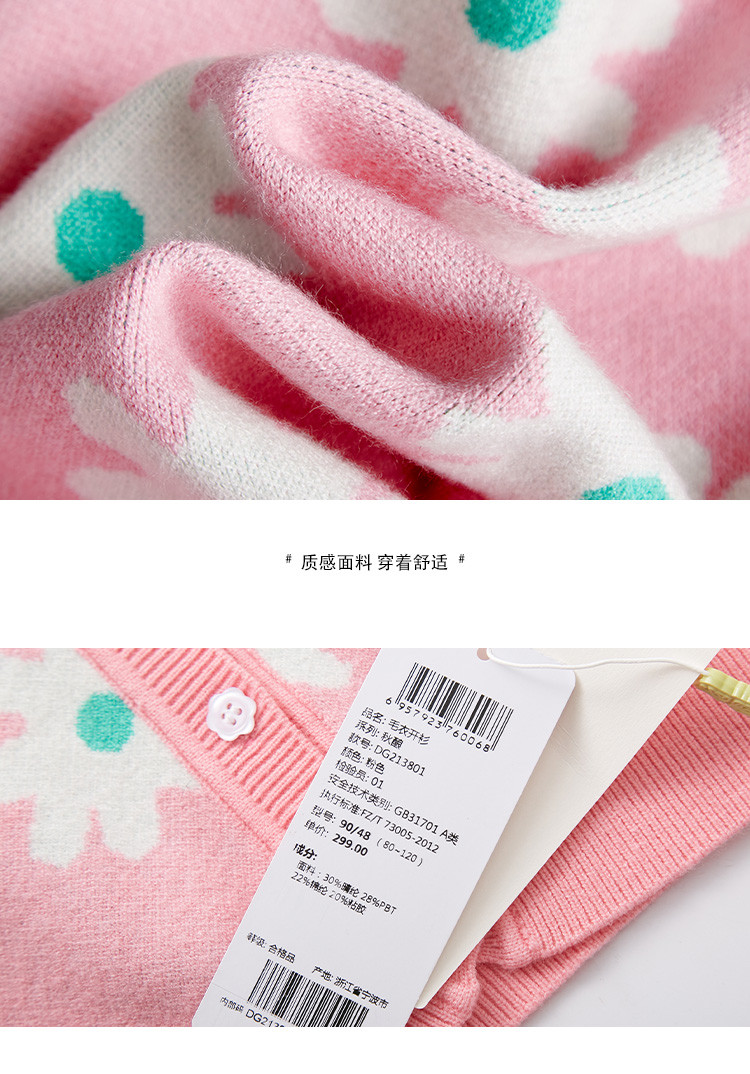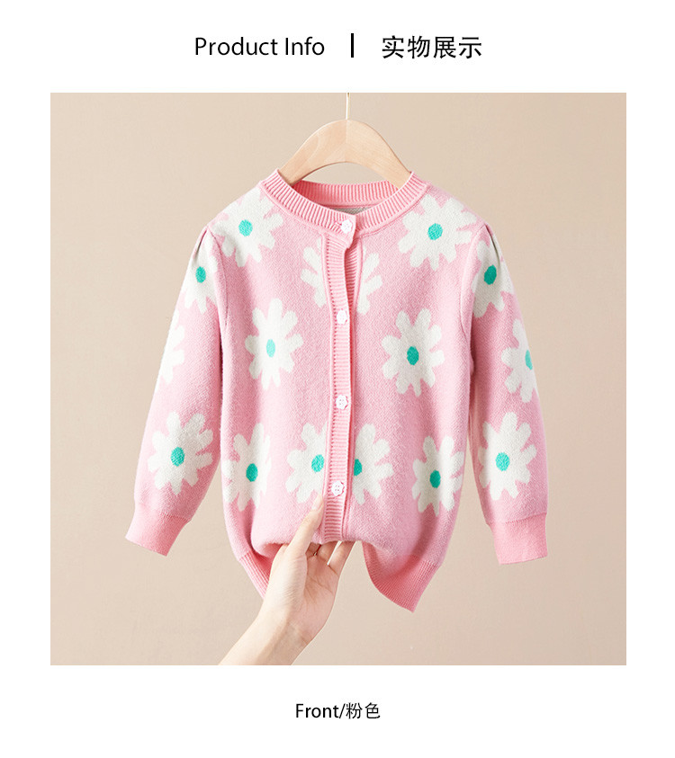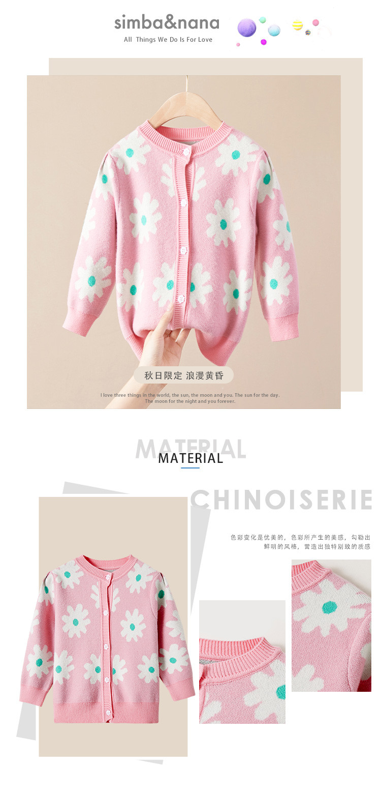 【辛巴娜娜】simbanana春秋儿童可爱白色花女宝短款针织开衫女童毛衣上衣外套