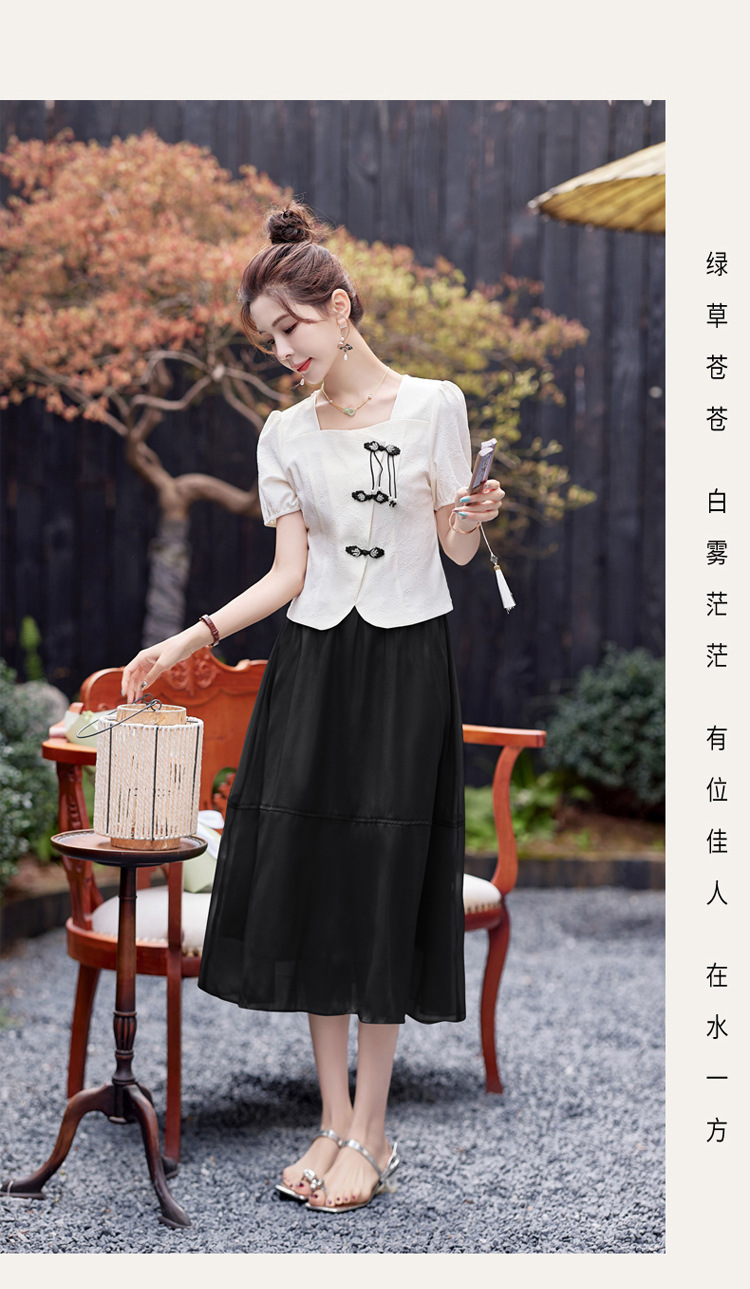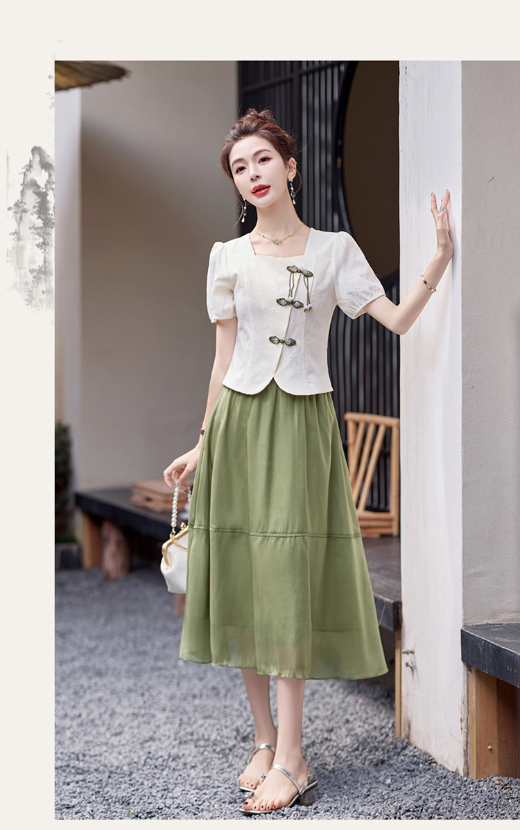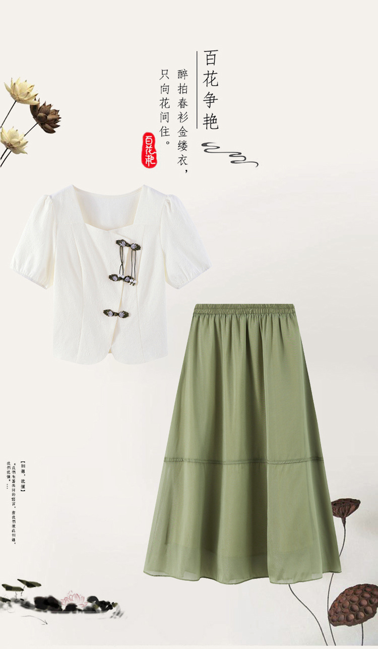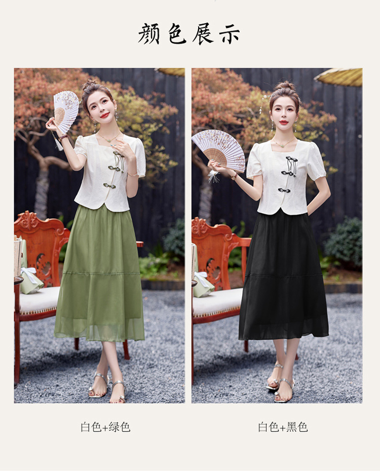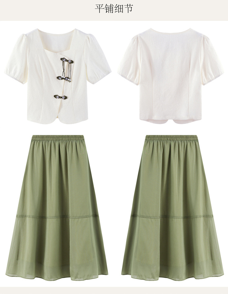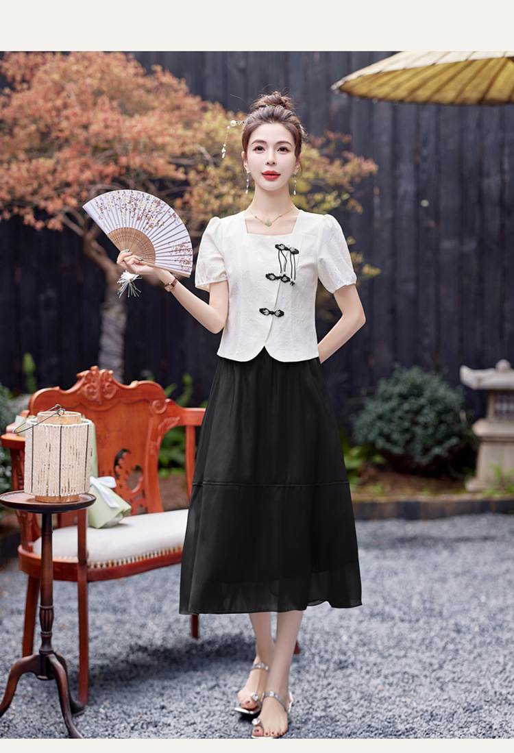 新中式国风套装2024夏新款小个子减龄洋气小清新网纱半身裙两件套YLFS8892