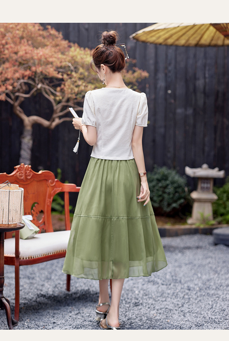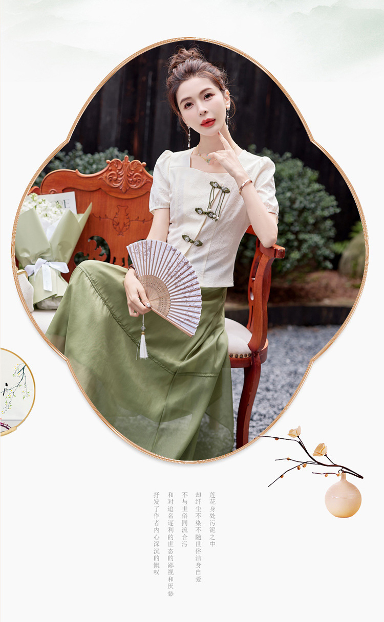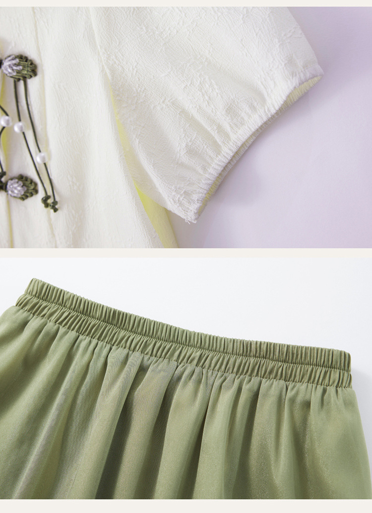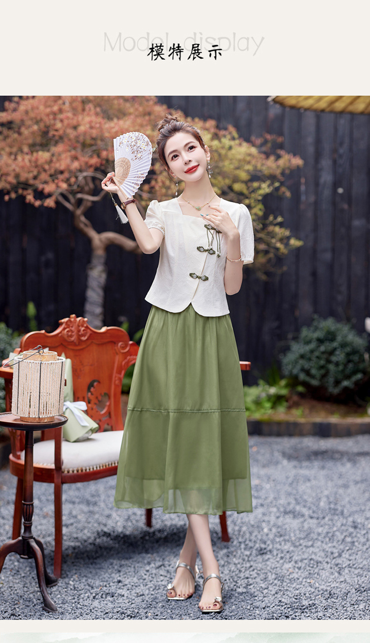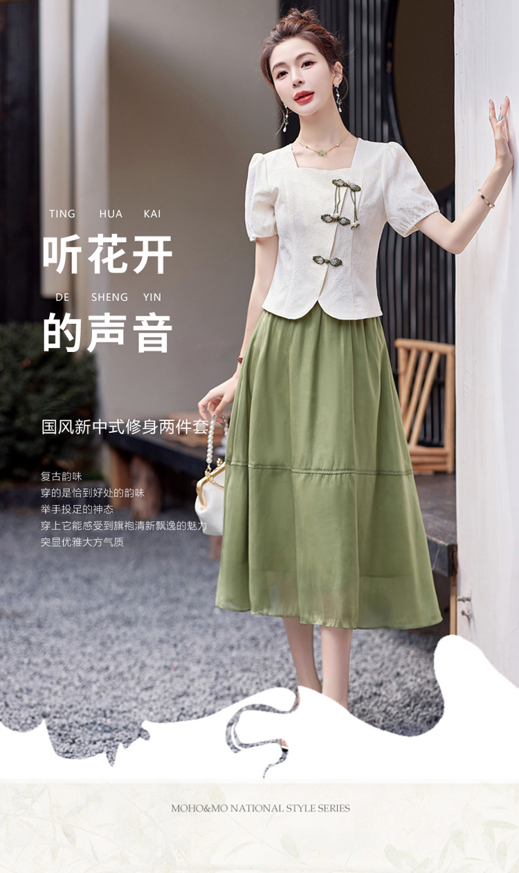 新中式国风套装2024夏新款小个子减龄洋气小清新网纱半身裙两件套YLFS8892