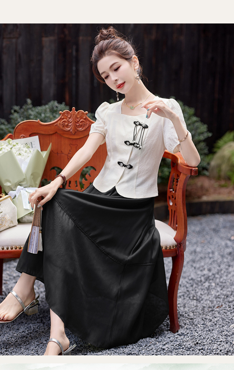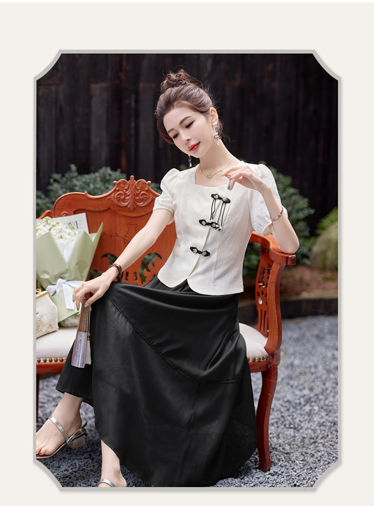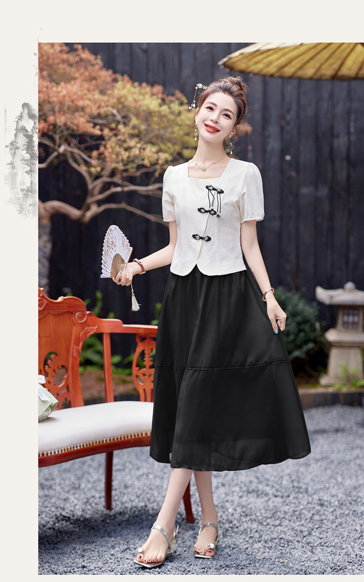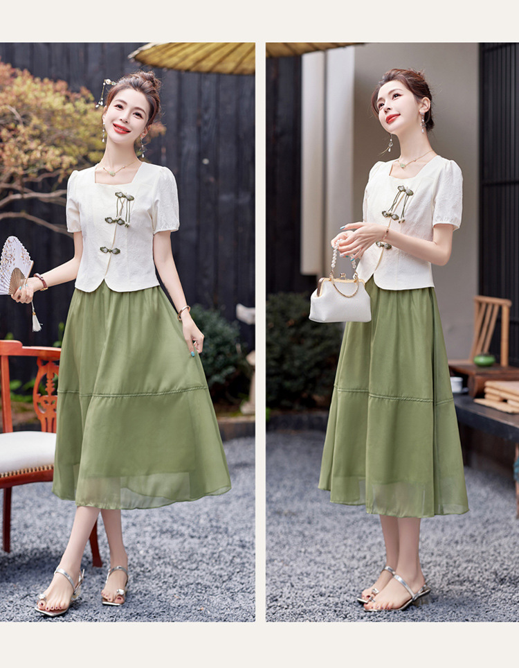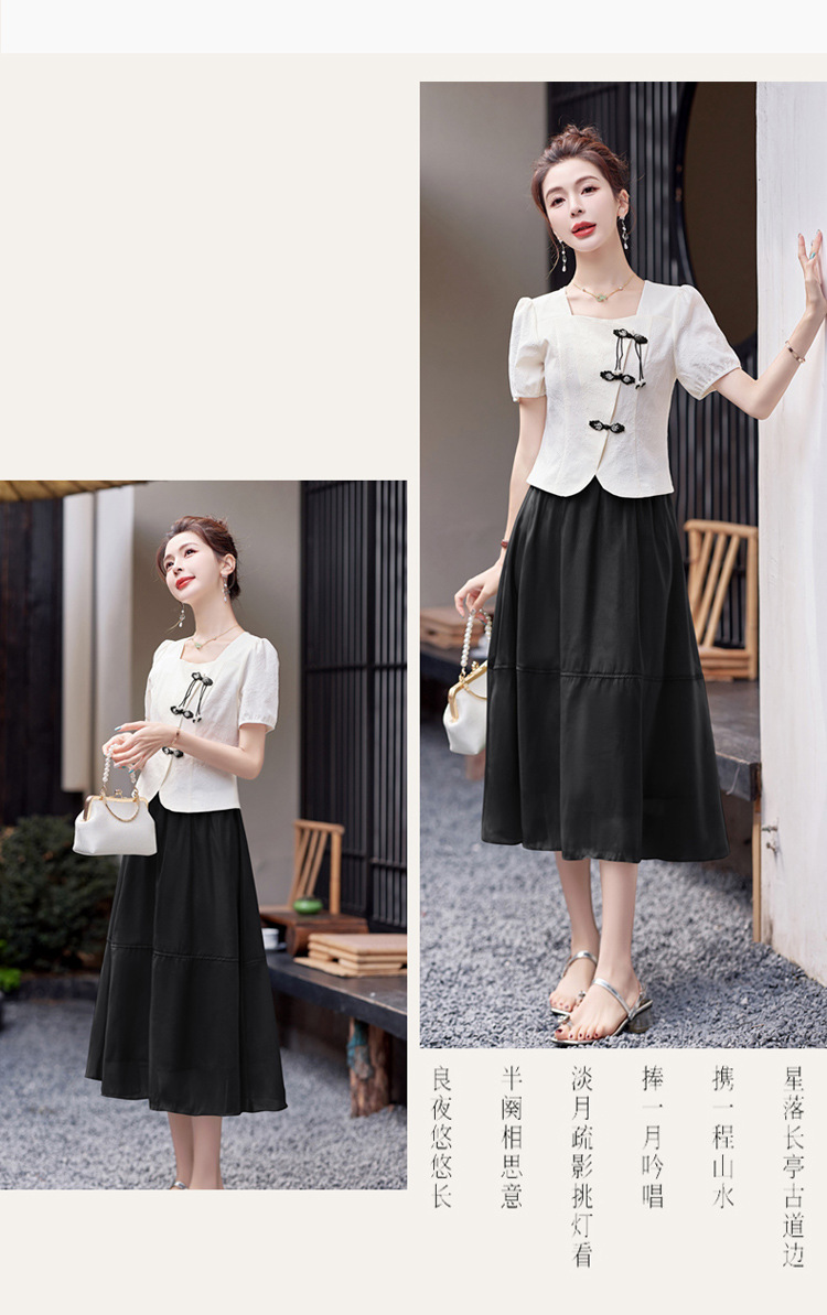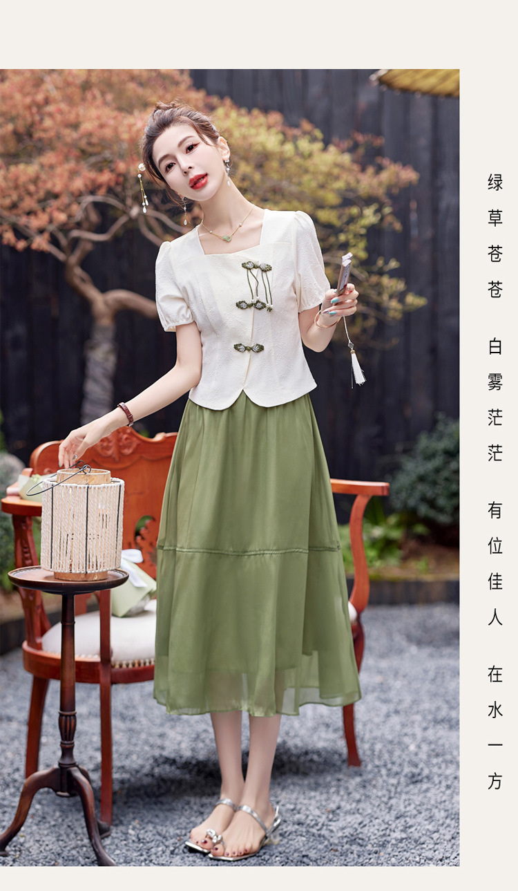 新中式国风套装2024夏新款小个子减龄洋气小清新网纱半身裙两件套YLFS8892
