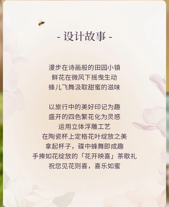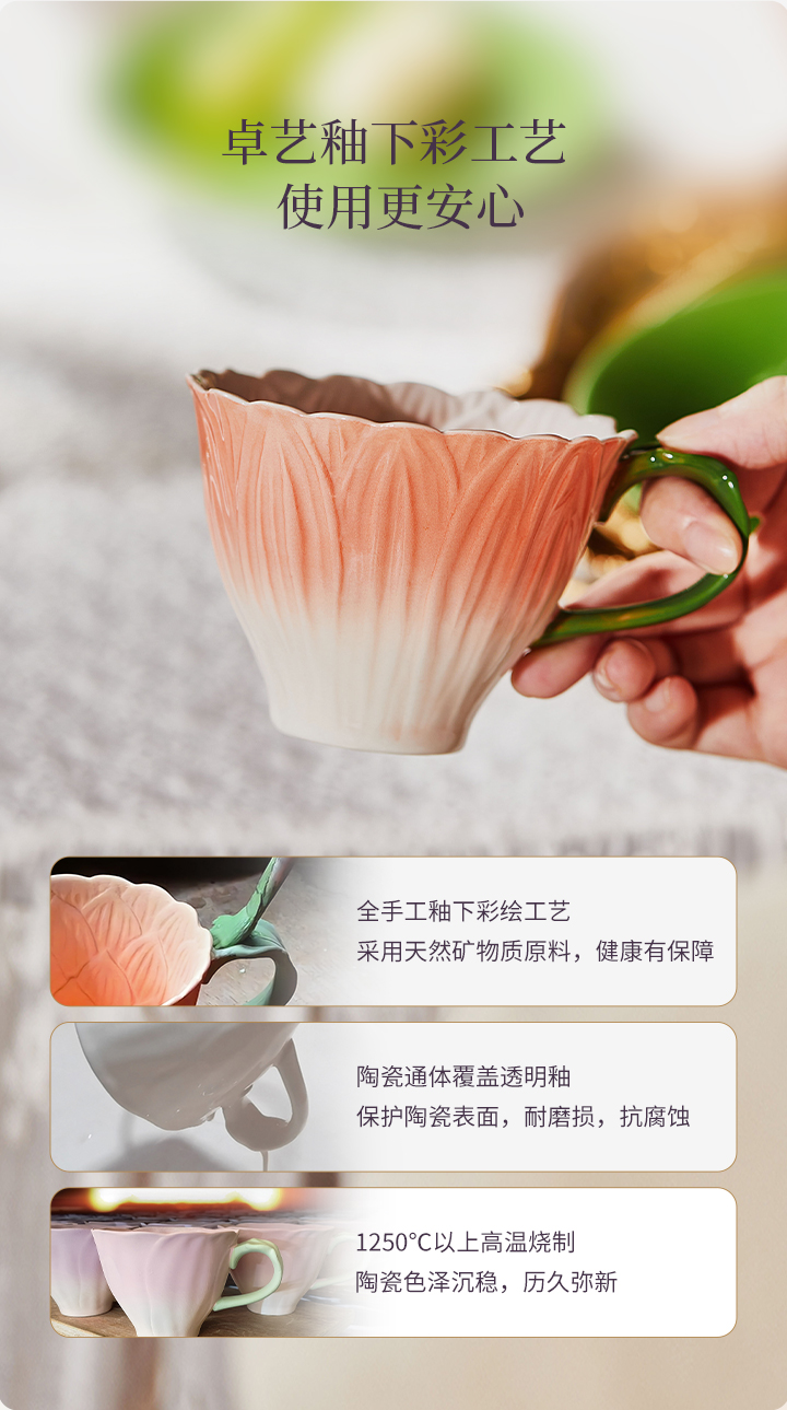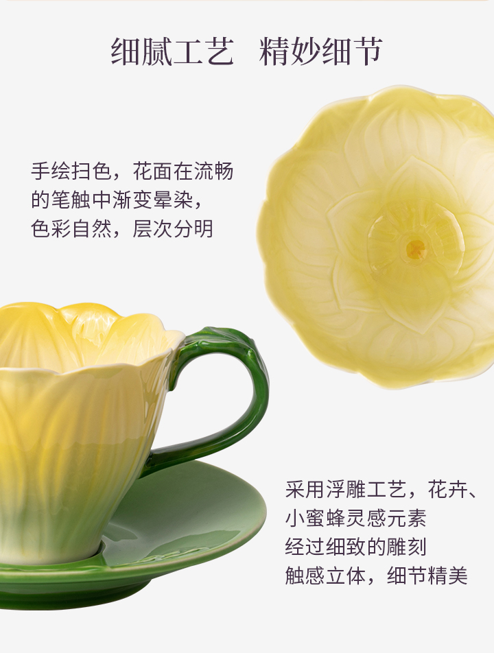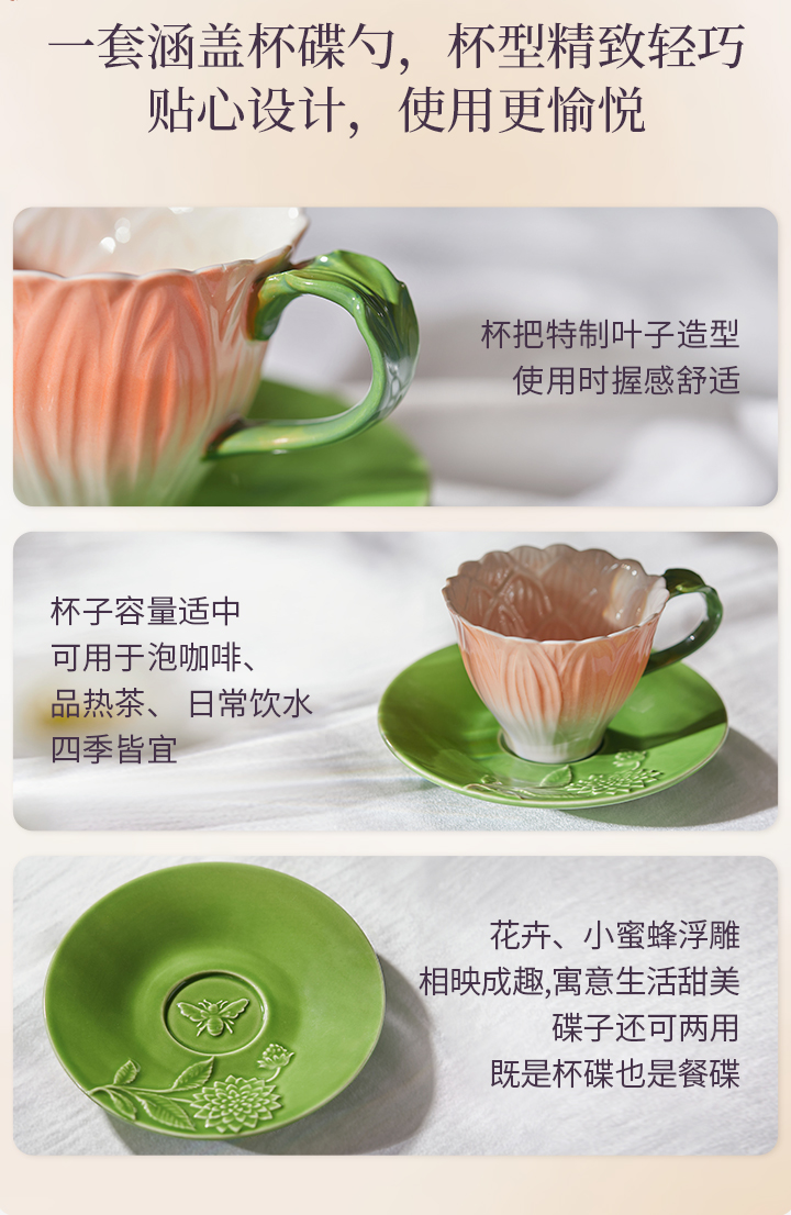 JOYYE花开映喜-釉下彩浮雕花高颜值创意杯子女下午茶杯碟套装陶瓷带勺礼盒