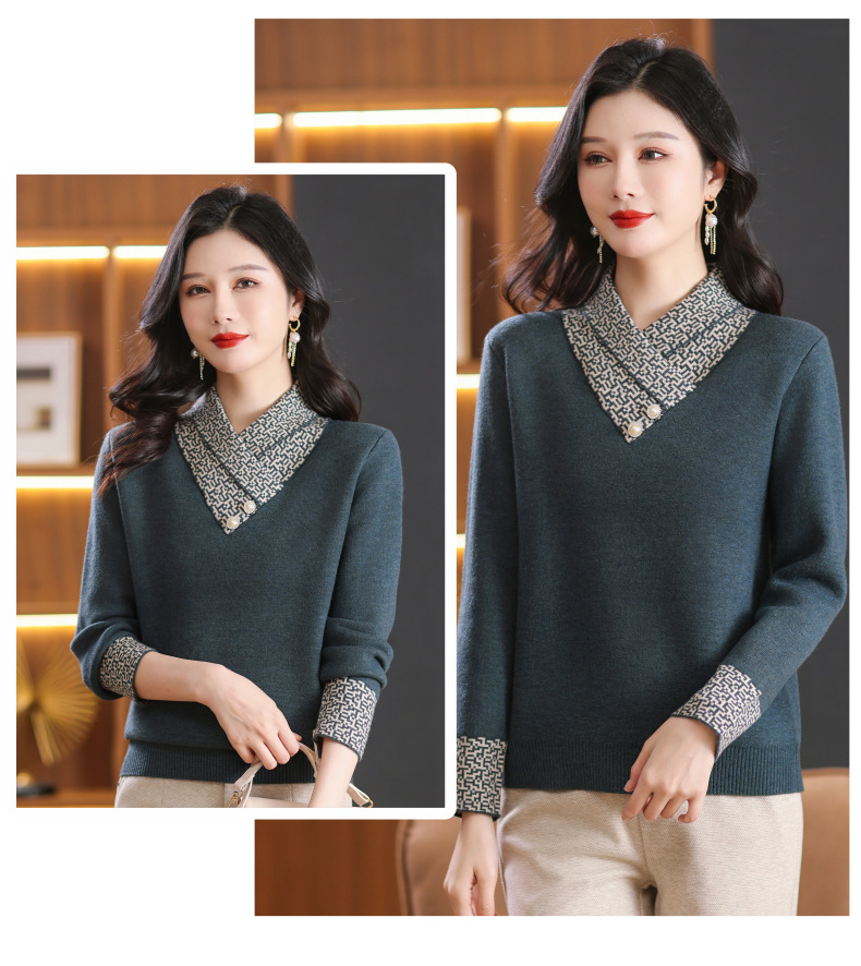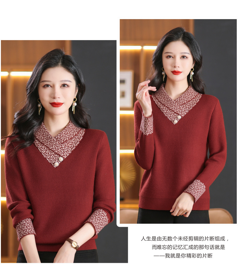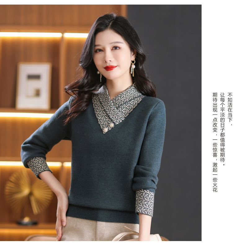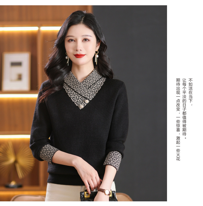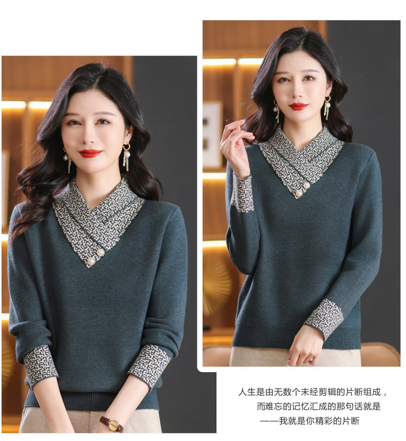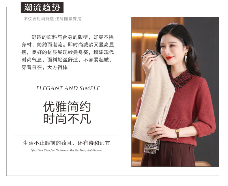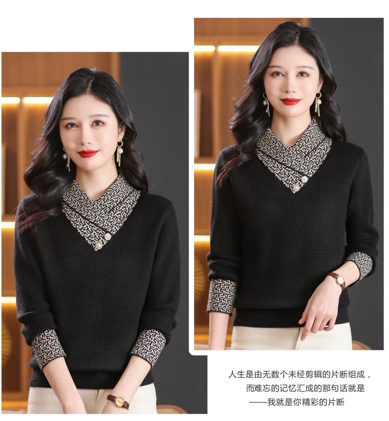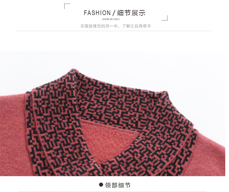宽松立领加绒毛衣中年妈妈保暖针织上衣CC-26695