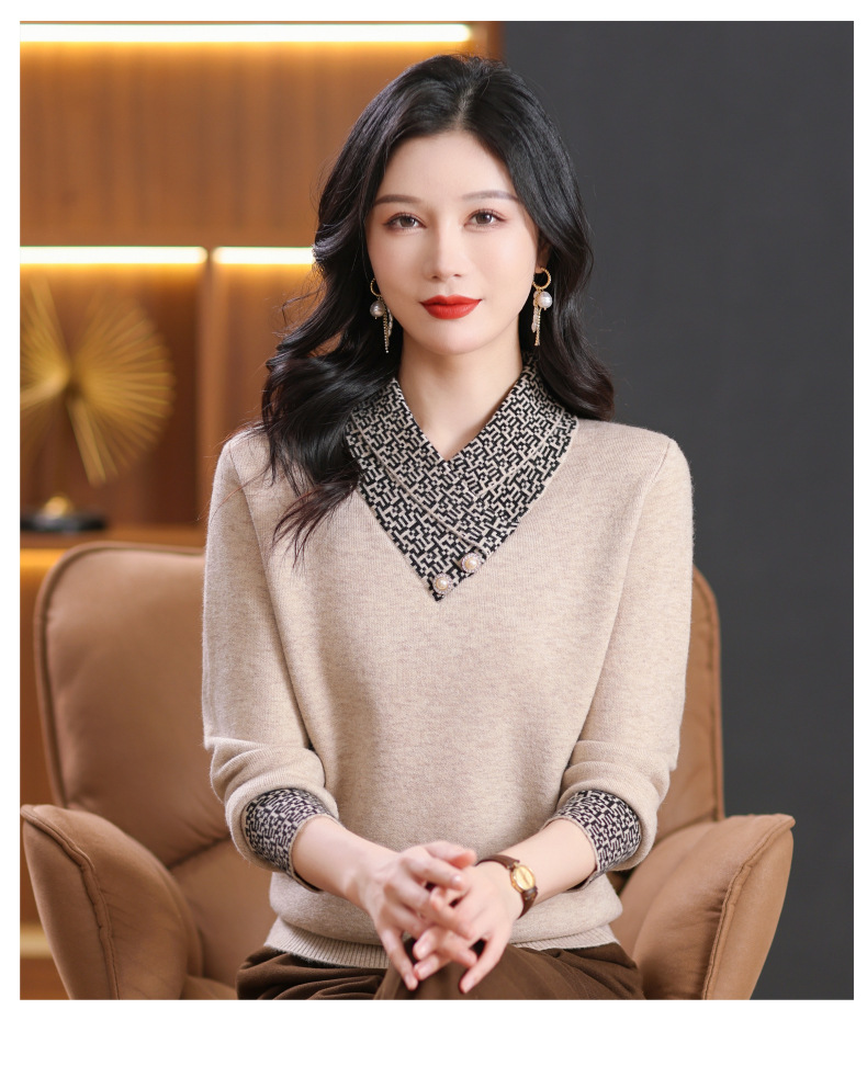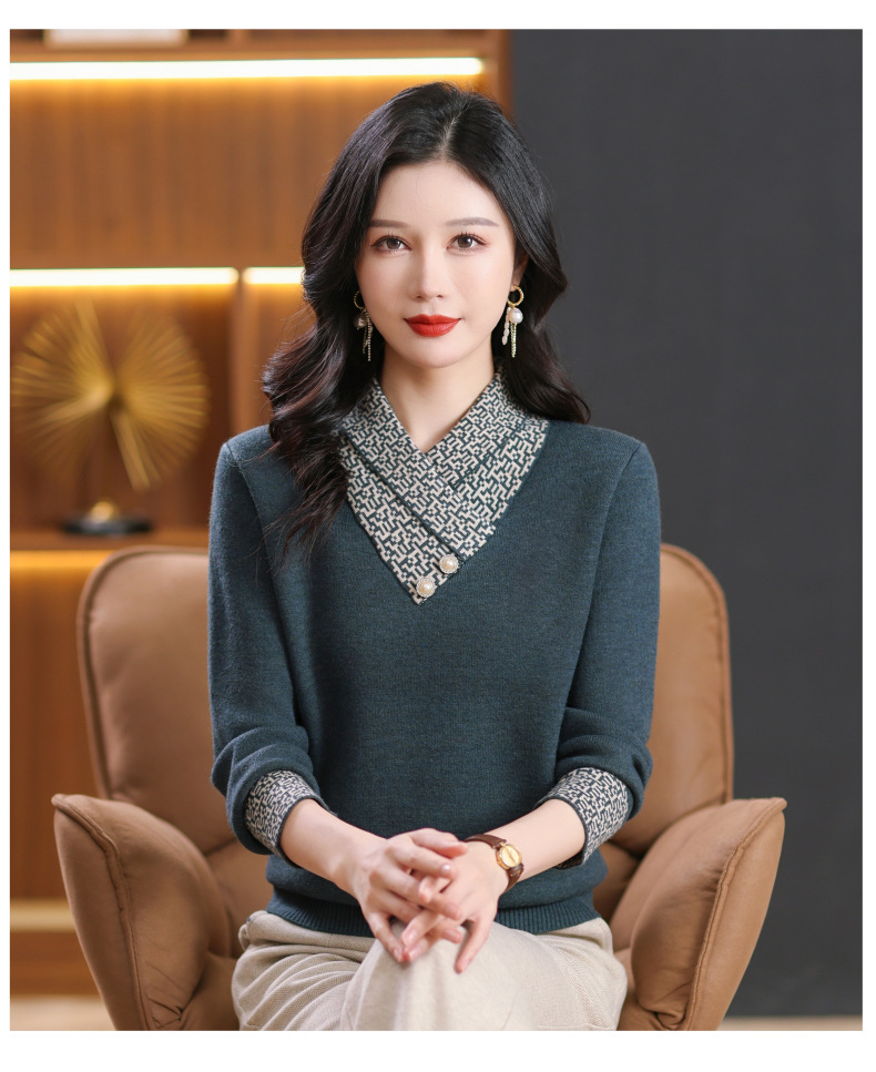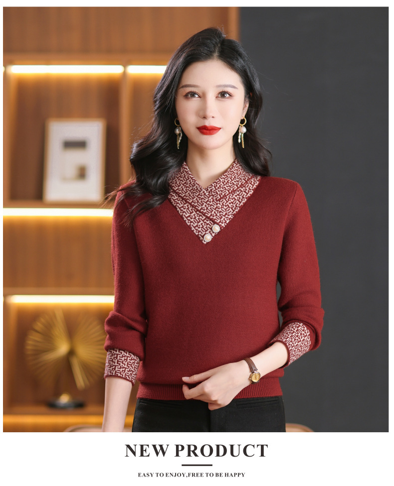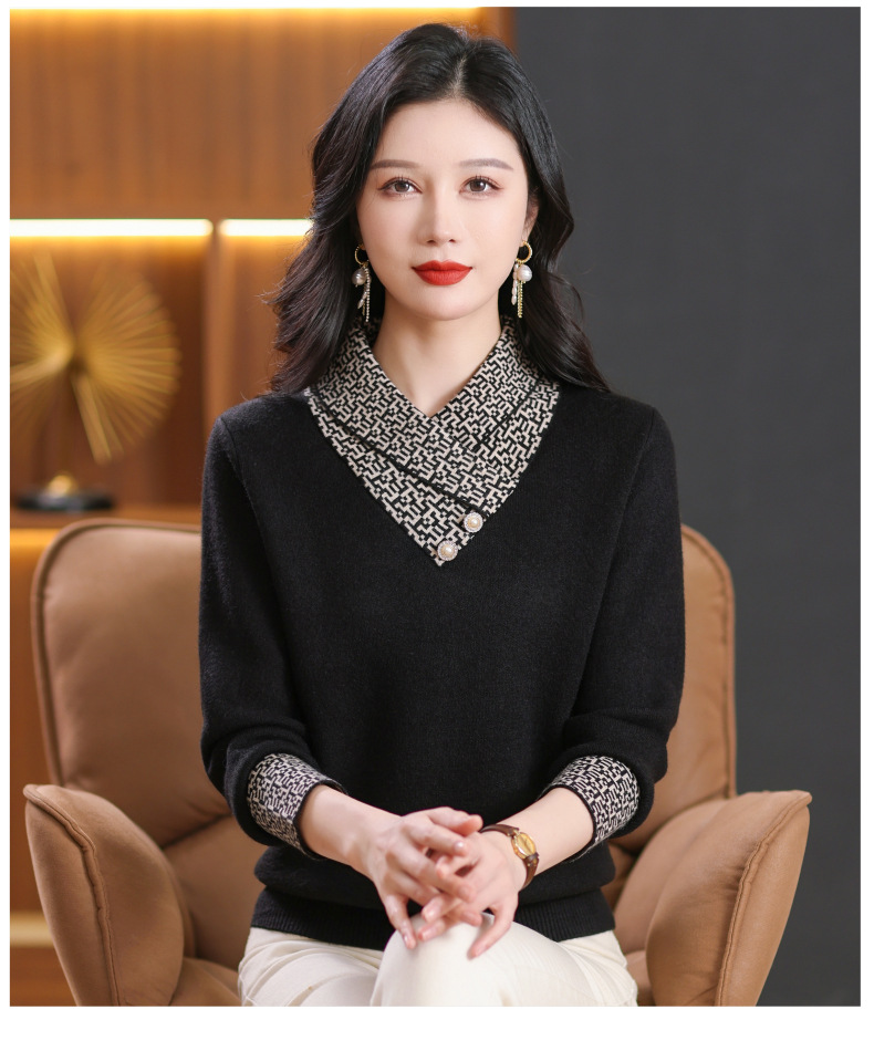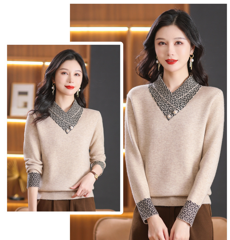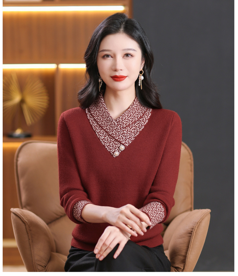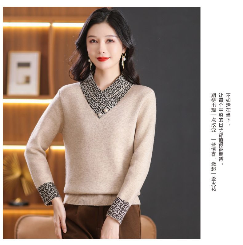 宽松立领加绒毛衣中年妈妈保暖针织上衣CC-26695