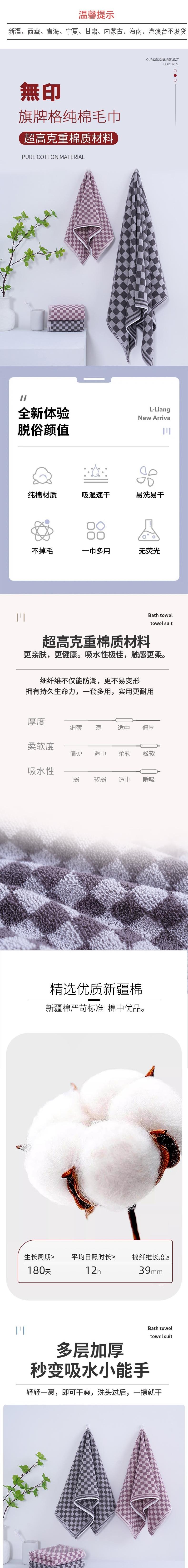 無印良品 旗牌格纯棉毛巾灰小格单条装 MJ-zu0668