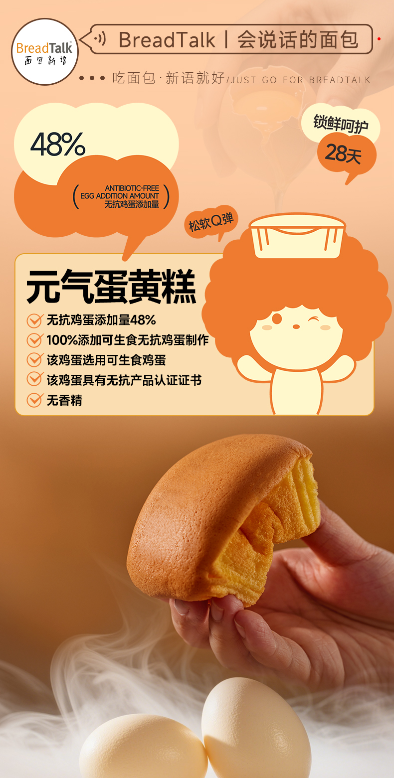 元气蛋黄糕 100%可生食无抗鸡蛋制作 添加量48% 无香精 干净配料