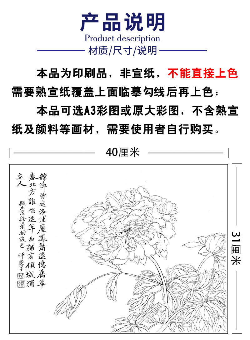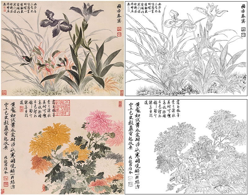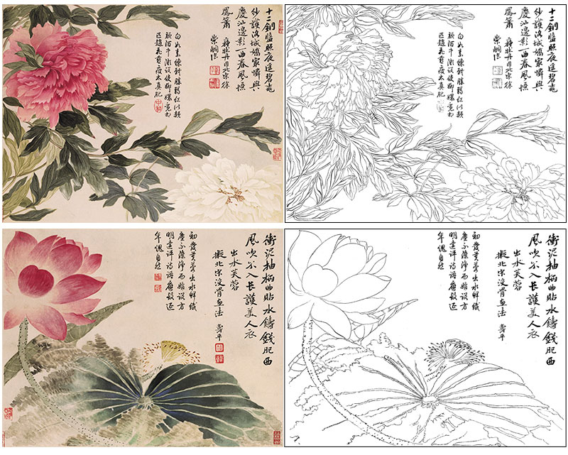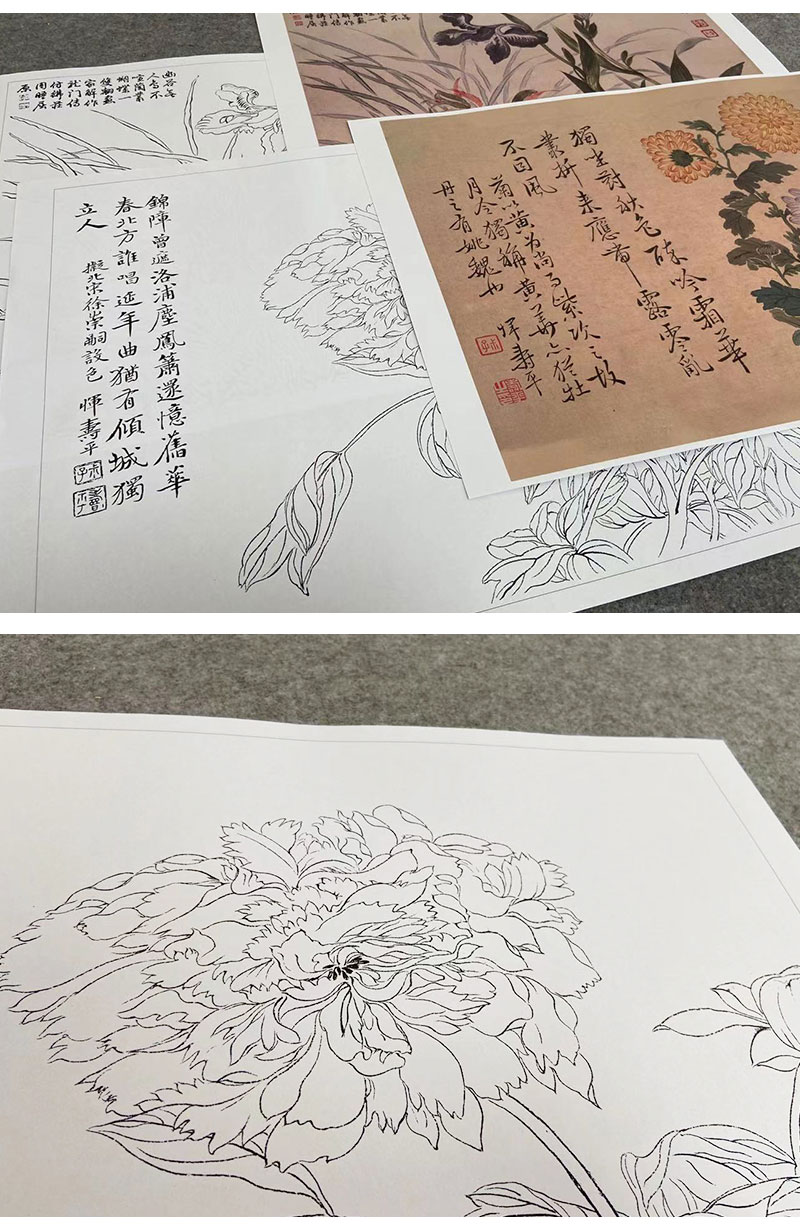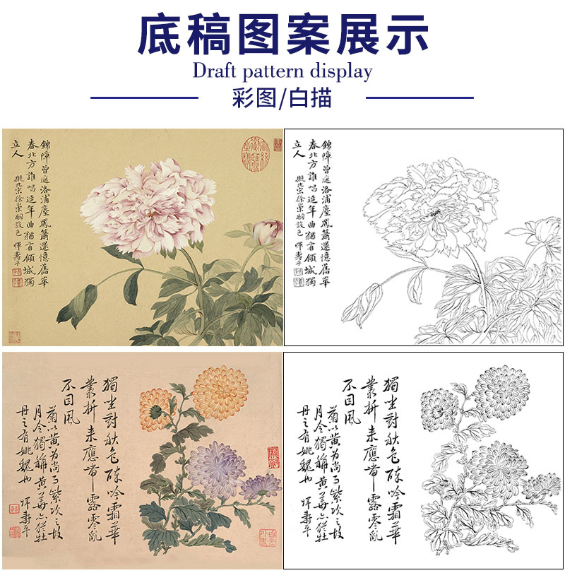 恽寿平没骨工笔花鸟画白描底稿花卉册页小品一套六幅册页尺寸31×40厘米SP95