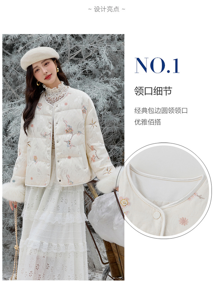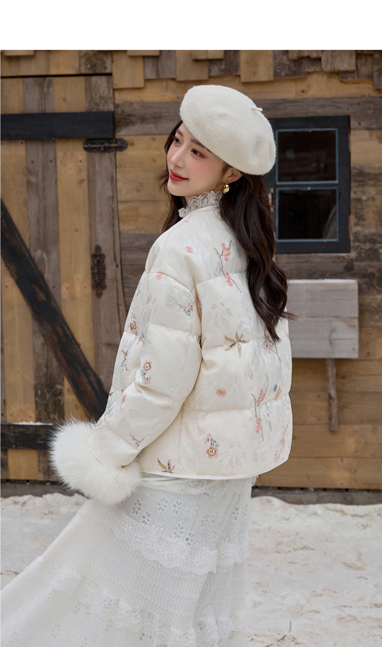 HR YJLY86859复古风羽绒服新中式重工刺绣狐狸毛羽绒服 商品图2