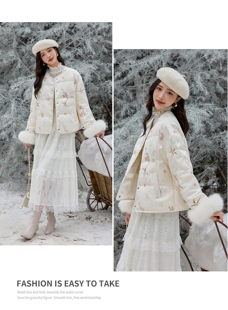HR YJLY86859复古风羽绒服新中式重工刺绣狐狸毛羽绒服 商品图1