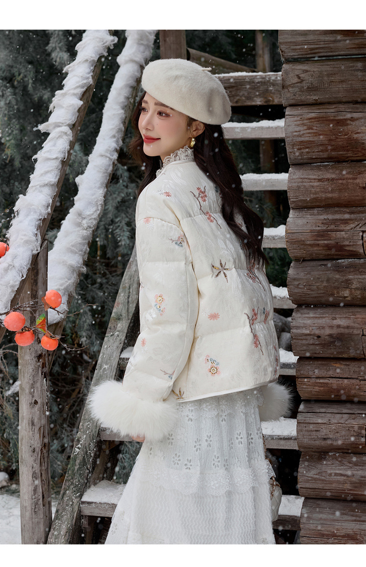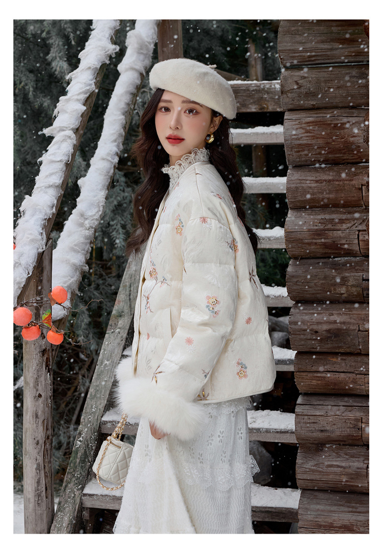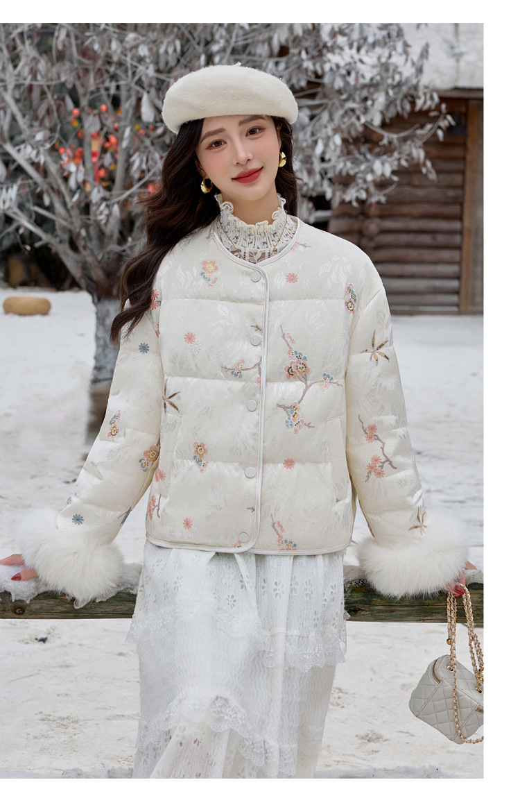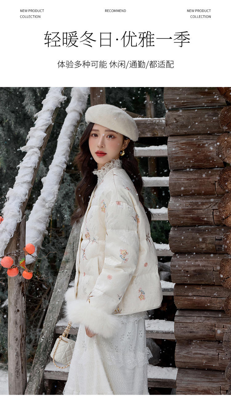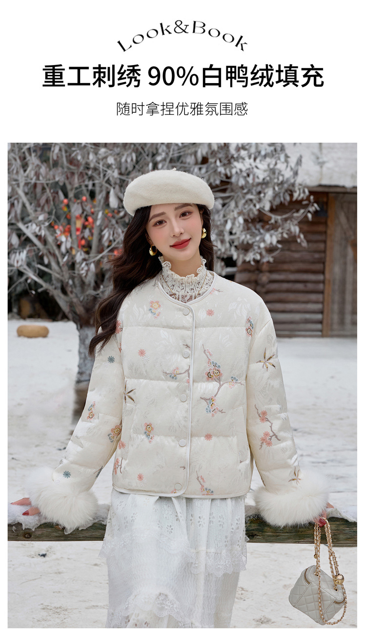 HR YJLY86859复古风羽绒服新中式重工刺绣狐狸毛羽绒服 商品图0