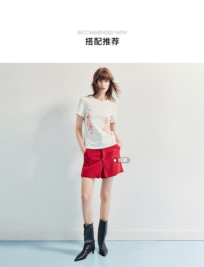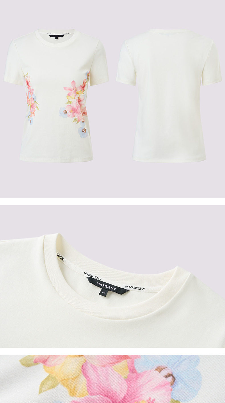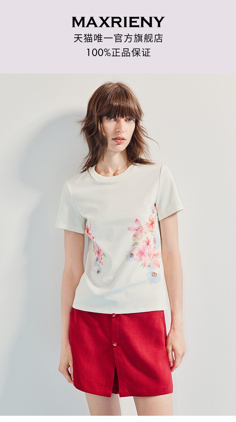 【商场同款】MAXRIENY精致日常感印花短袖t恤25夏款修身上衣女(货号:MC86TS252)