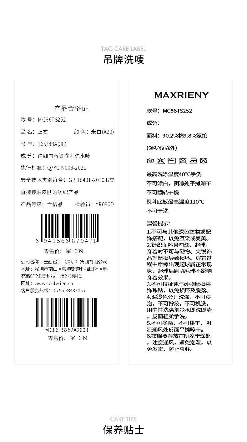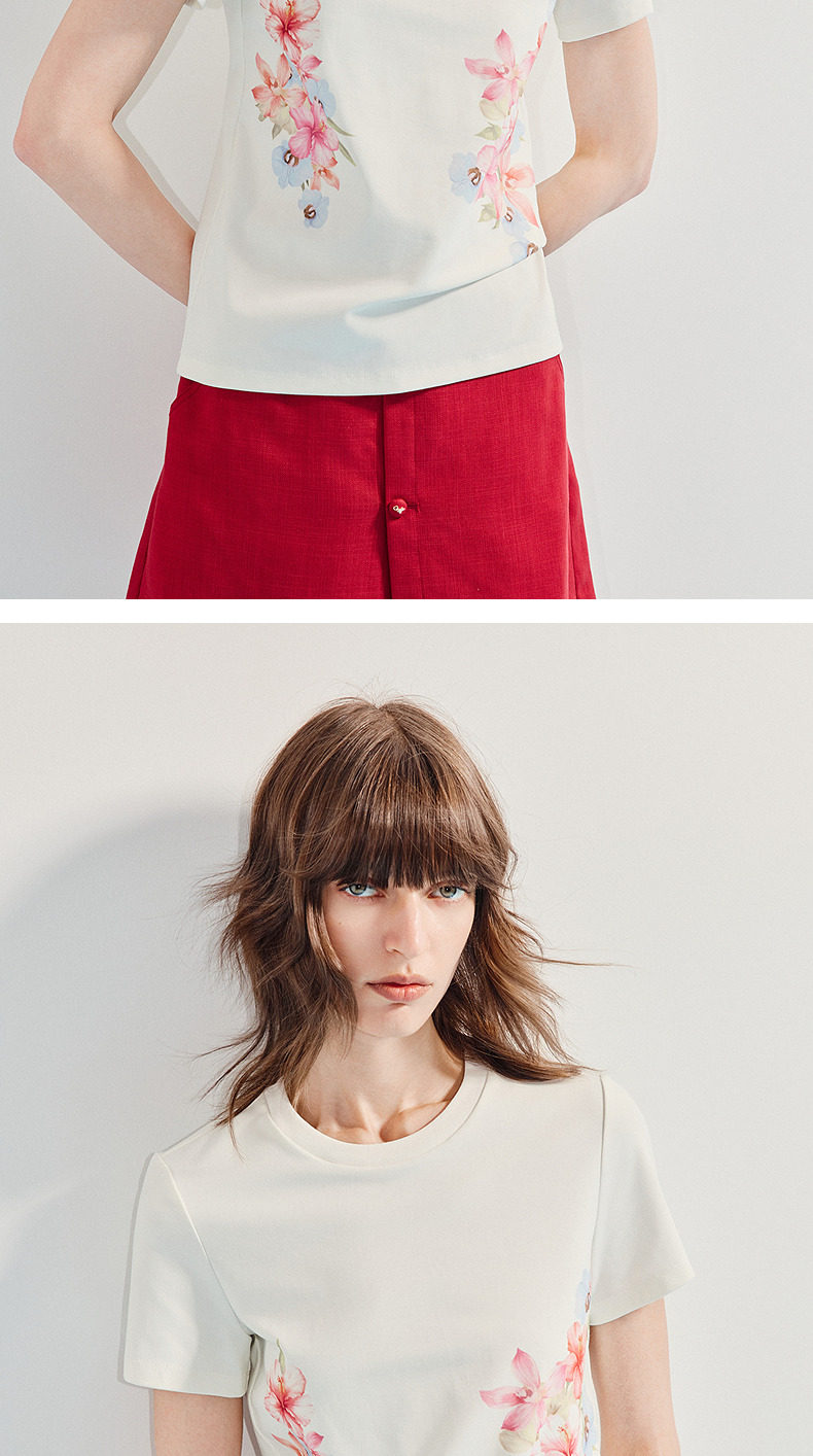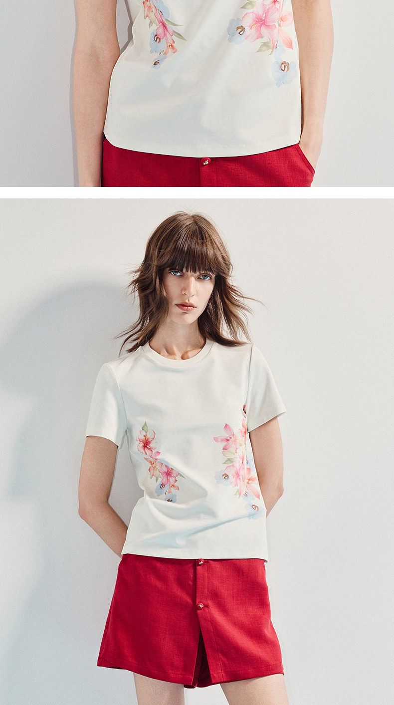 【商场同款】MAXRIENY精致日常感印花短袖t恤25夏款修身上衣女(货号:MC86TS252)