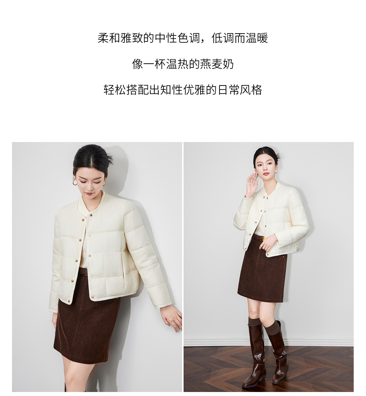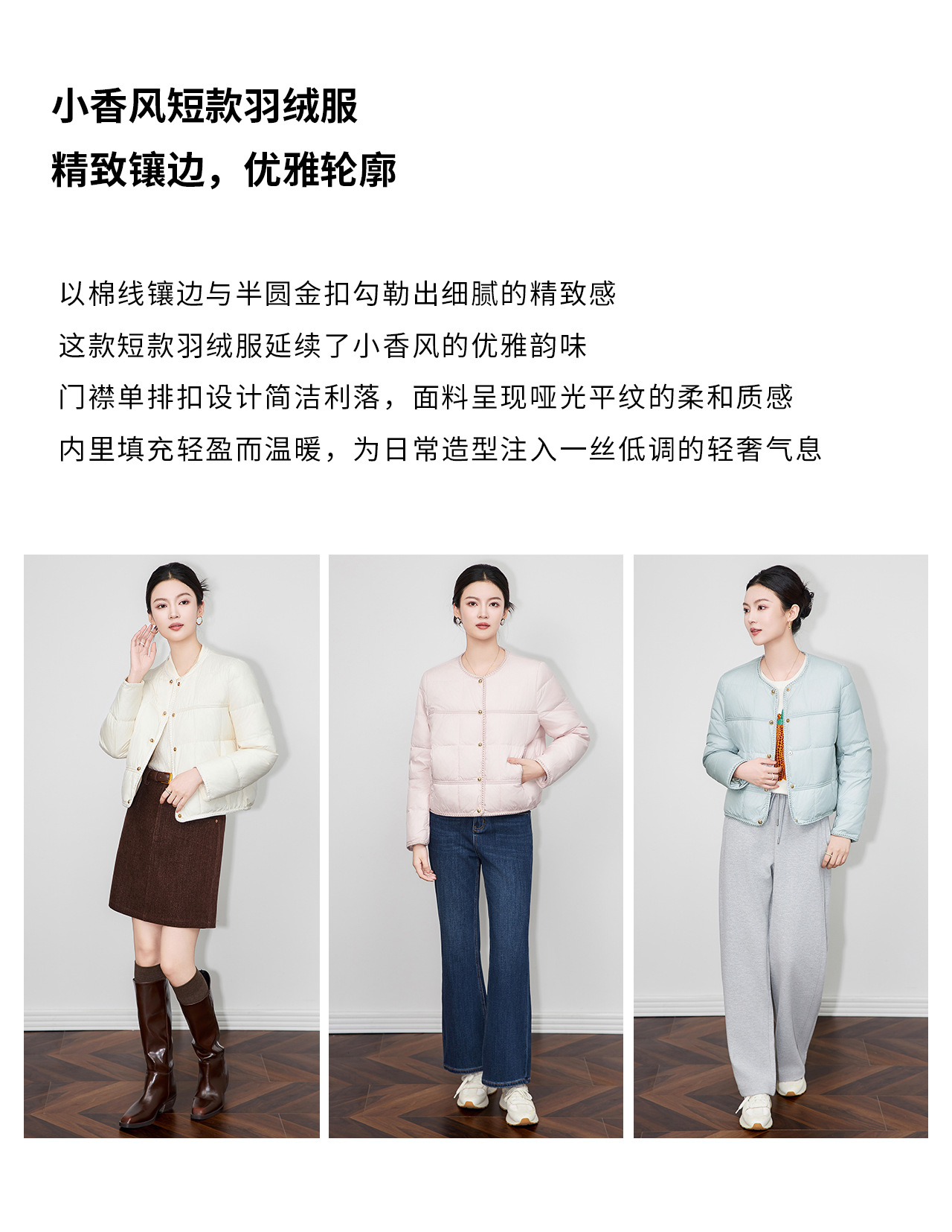 「高货wl」全新升级【铂金会员487/天猫659/差价172】(94614)洛诗琳2025冬季轻奢小香风90白鸭绒轻薄保暖短款羽绒服女