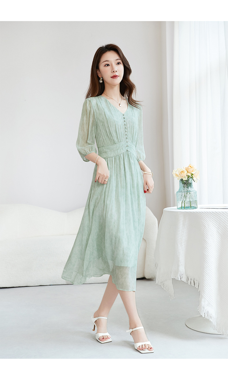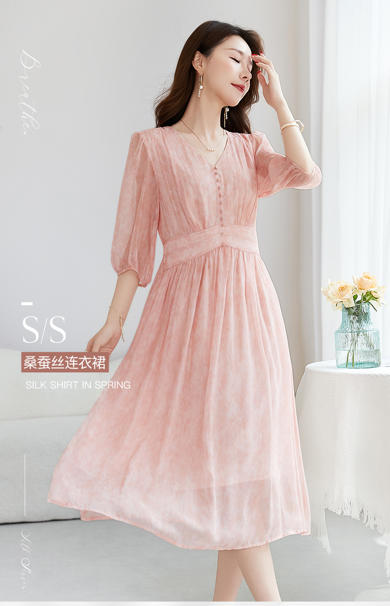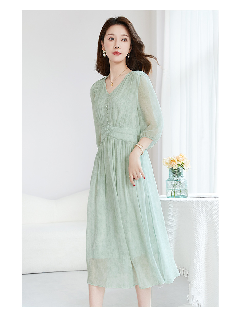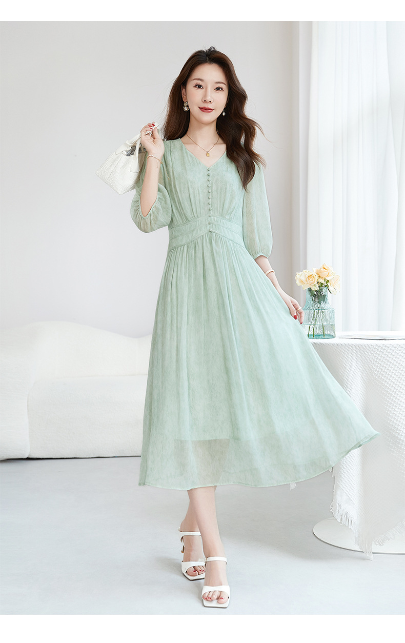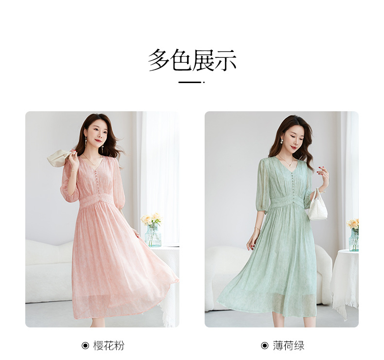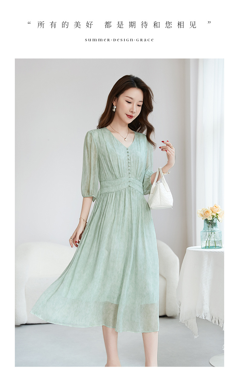 QS-【100%桑蚕丝】显瘦大码中长裙通勤气质A字仙女裙真丝连衣裙1085
