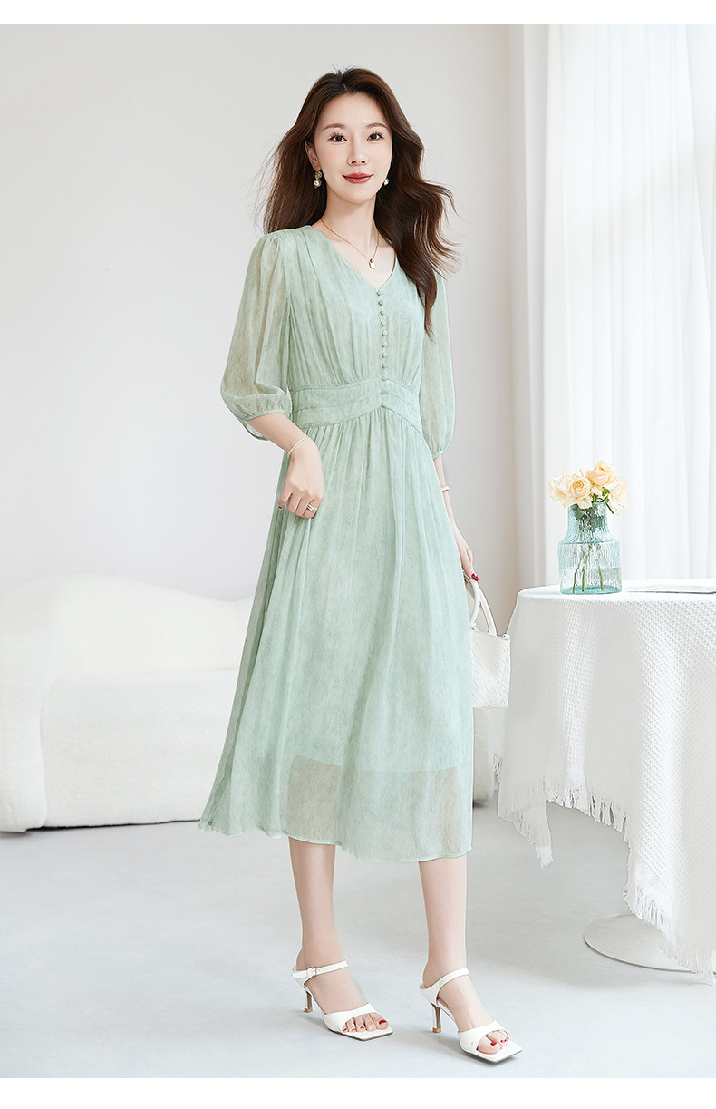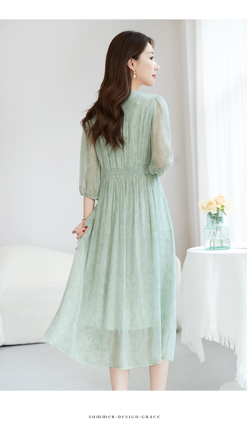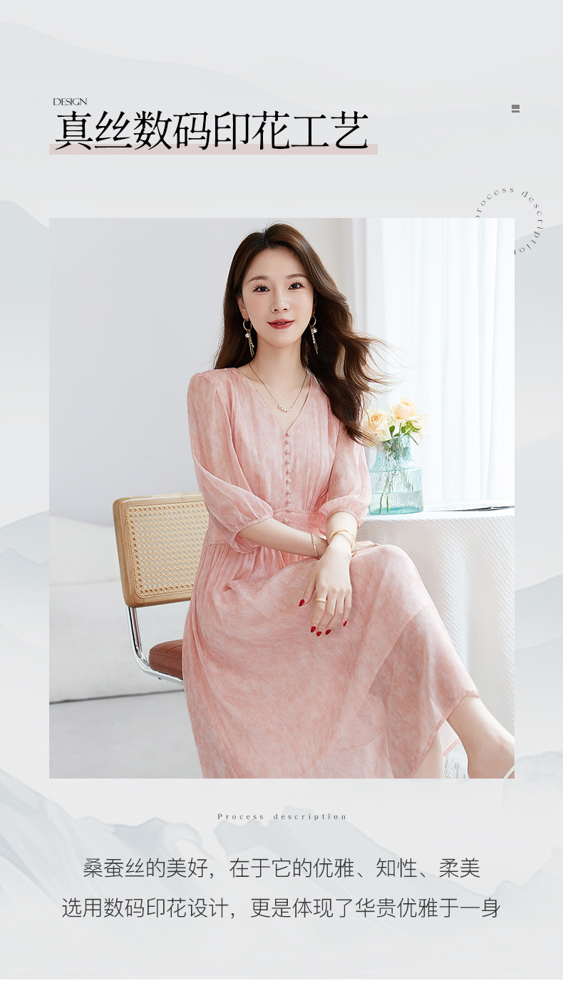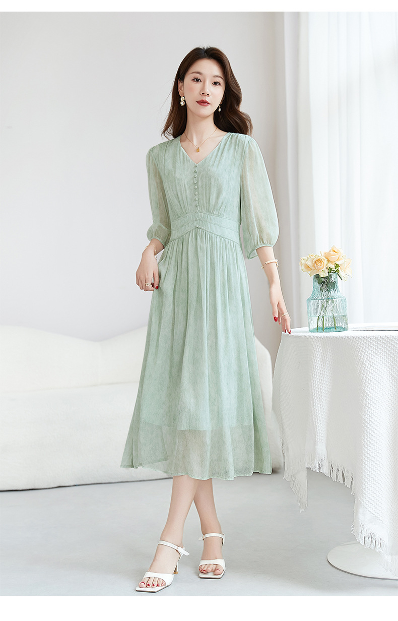 QS-【100%桑蚕丝】显瘦大码中长裙通勤气质A字仙女裙真丝连衣裙1085