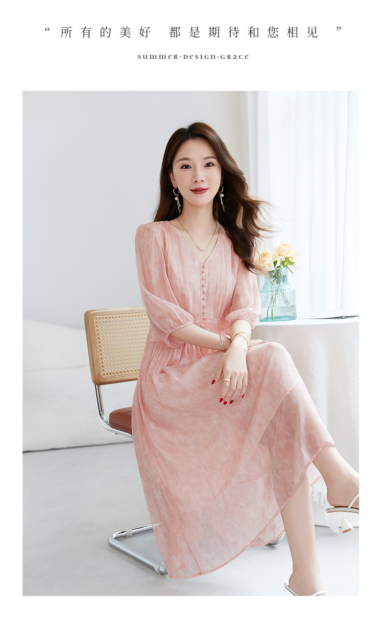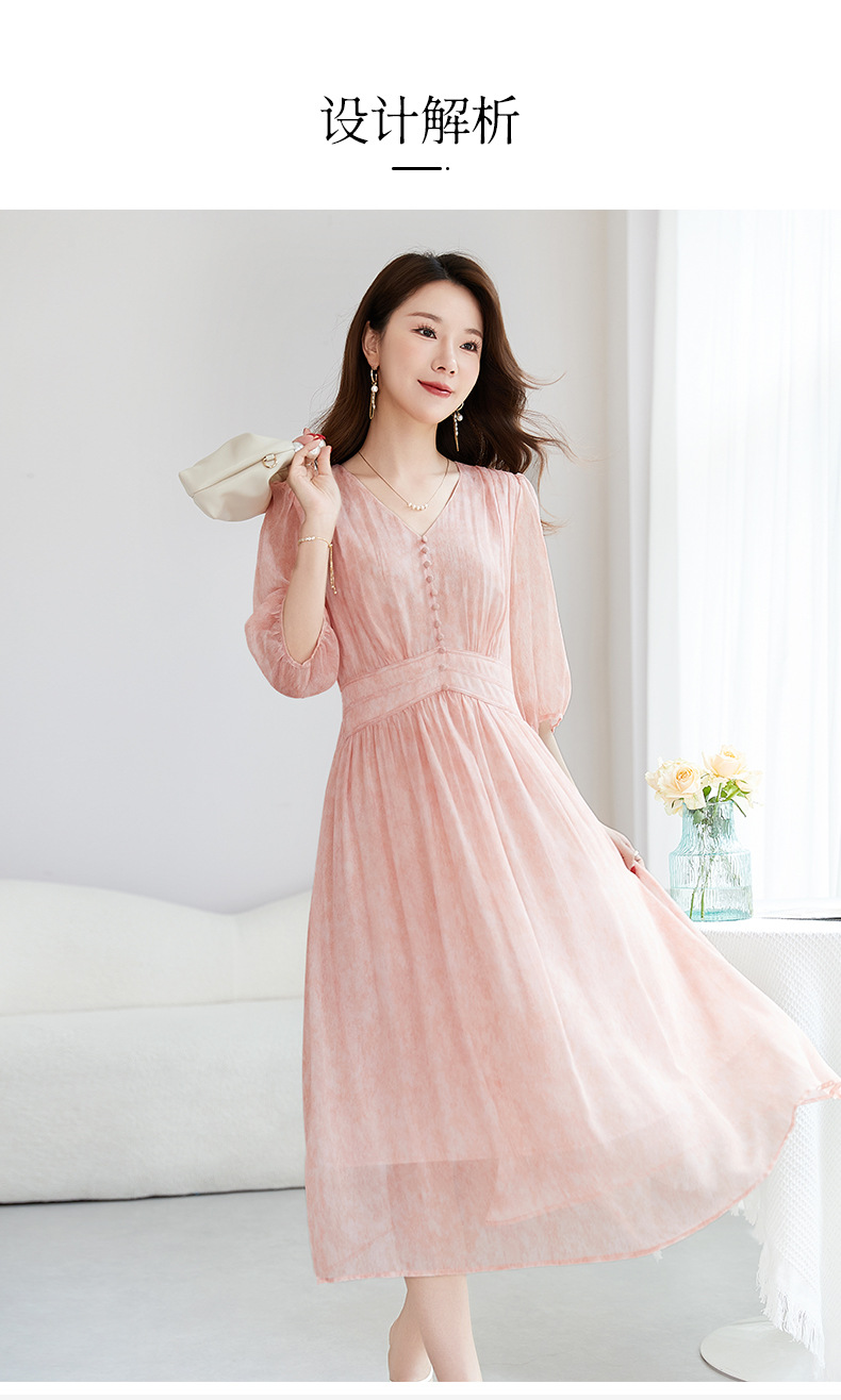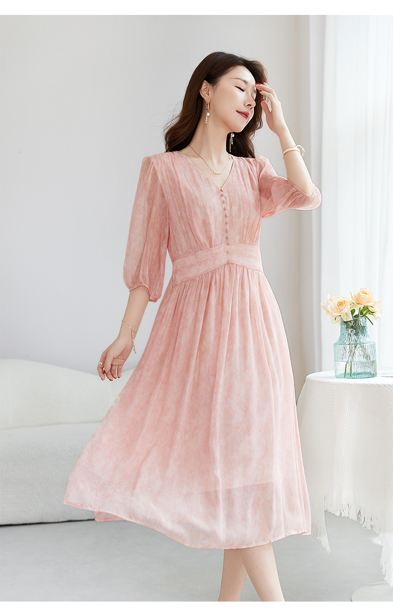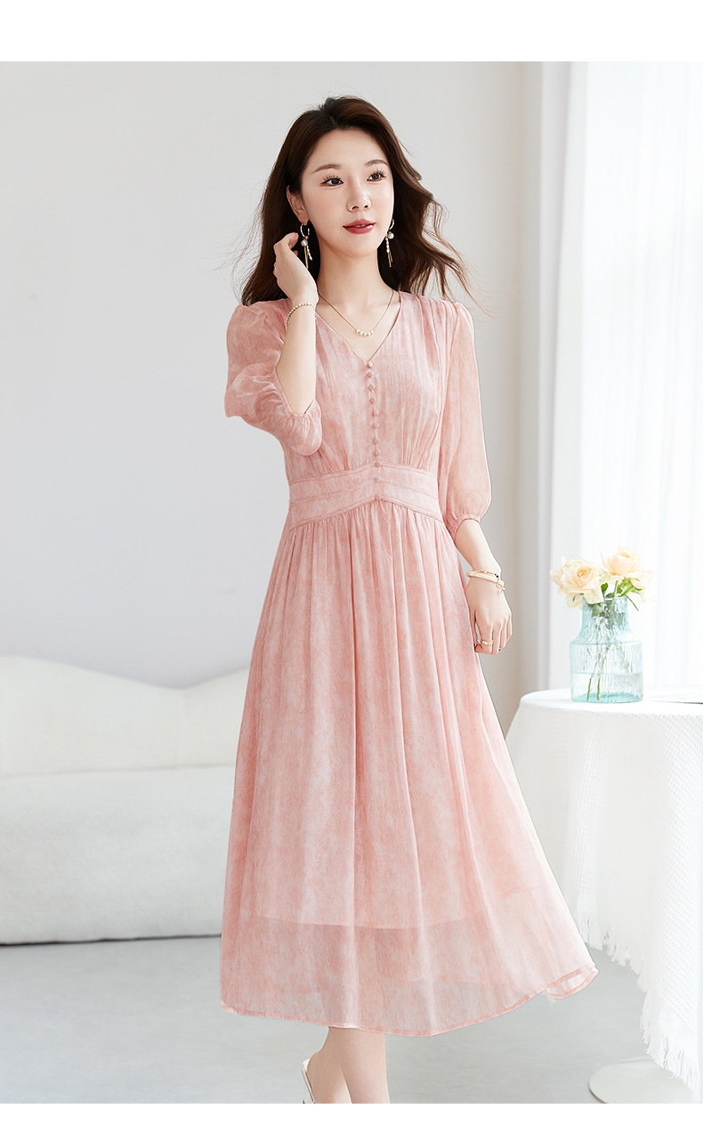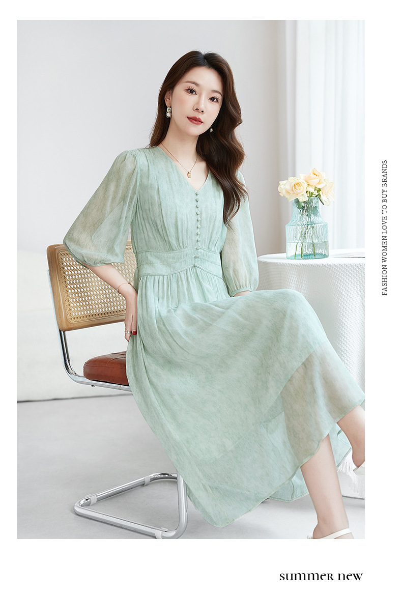 QS-【100%桑蚕丝】显瘦大码中长裙通勤气质A字仙女裙真丝连衣裙1085
