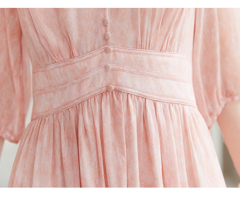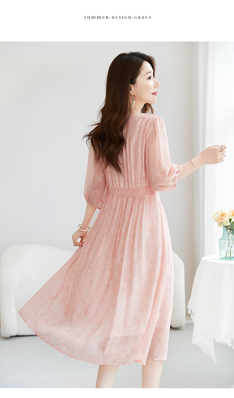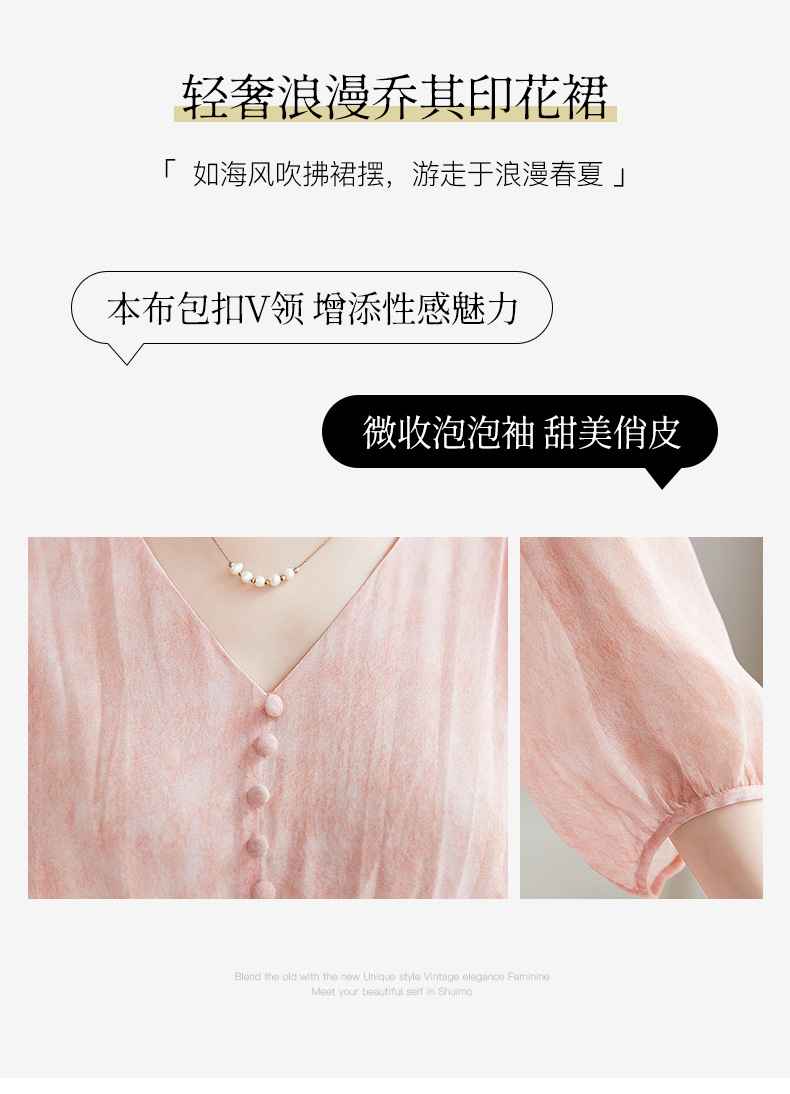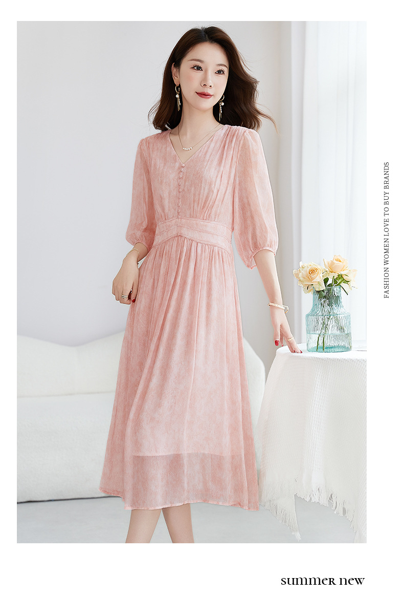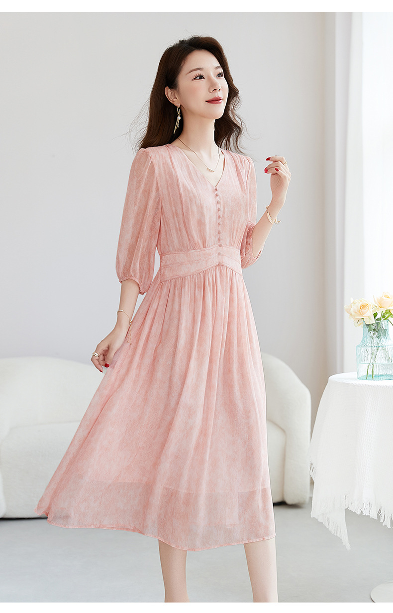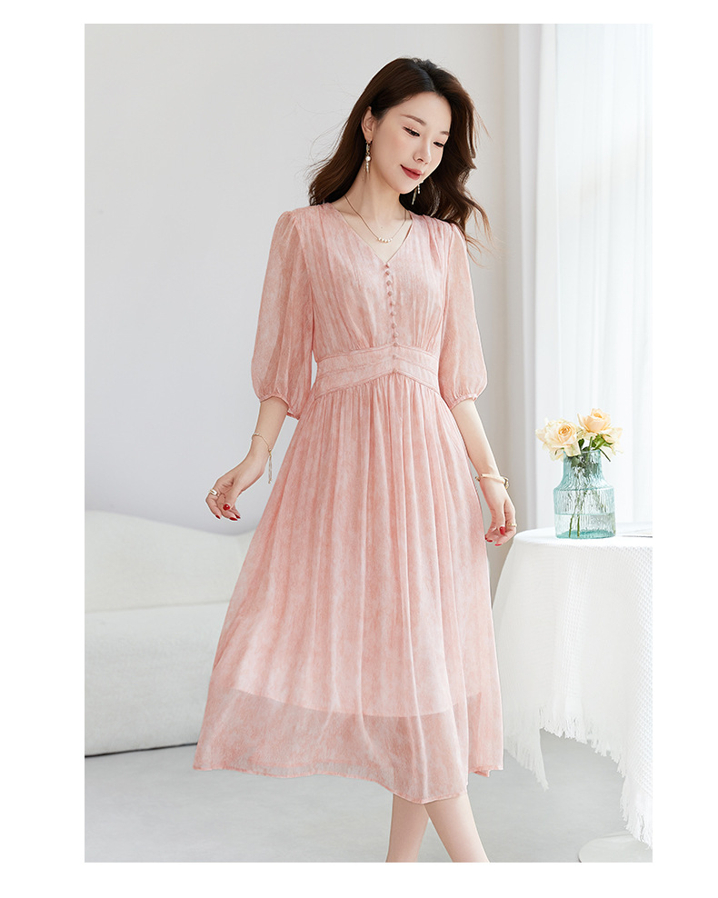 QS-【100%桑蚕丝】显瘦大码中长裙通勤气质A字仙女裙真丝连衣裙1085