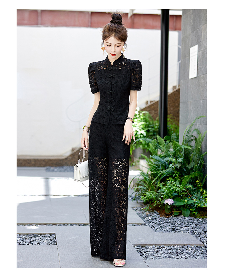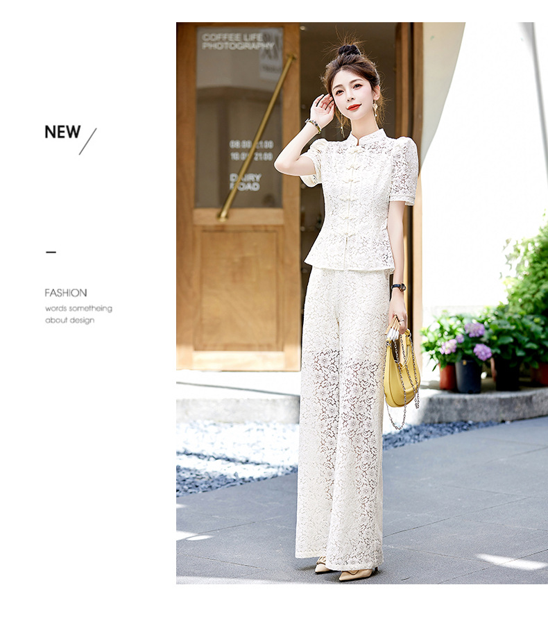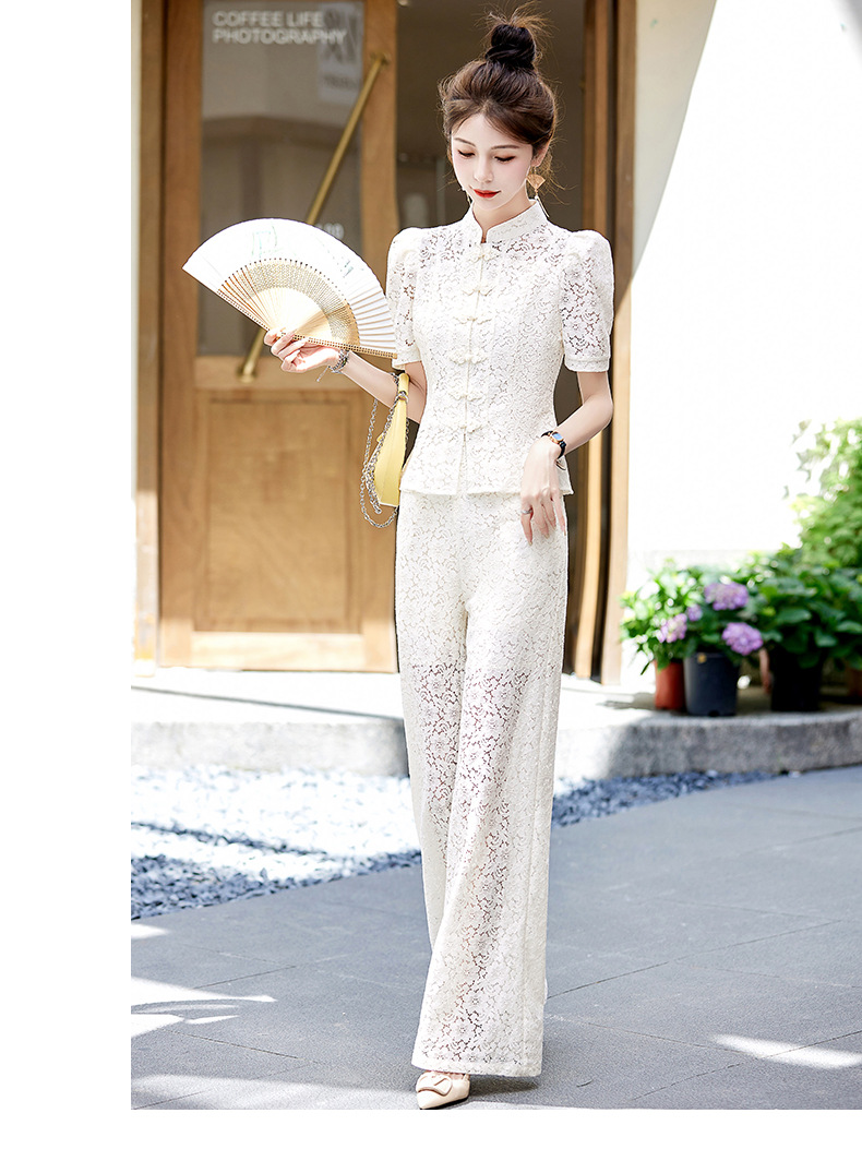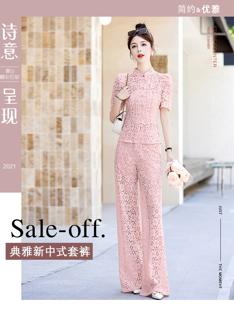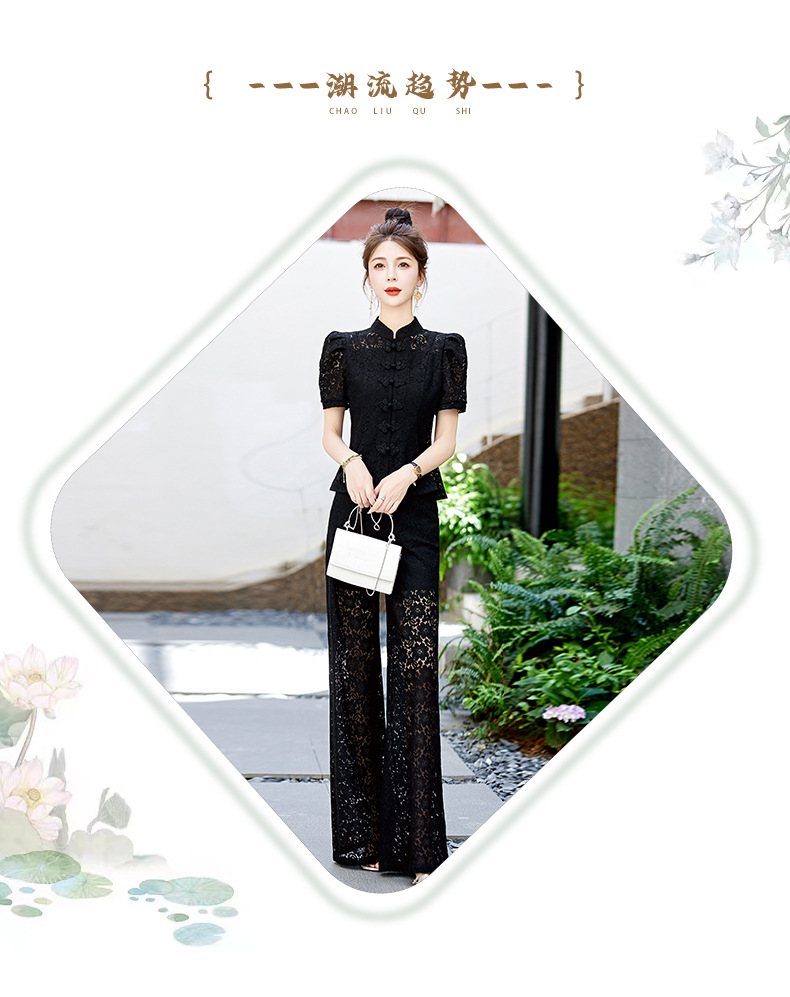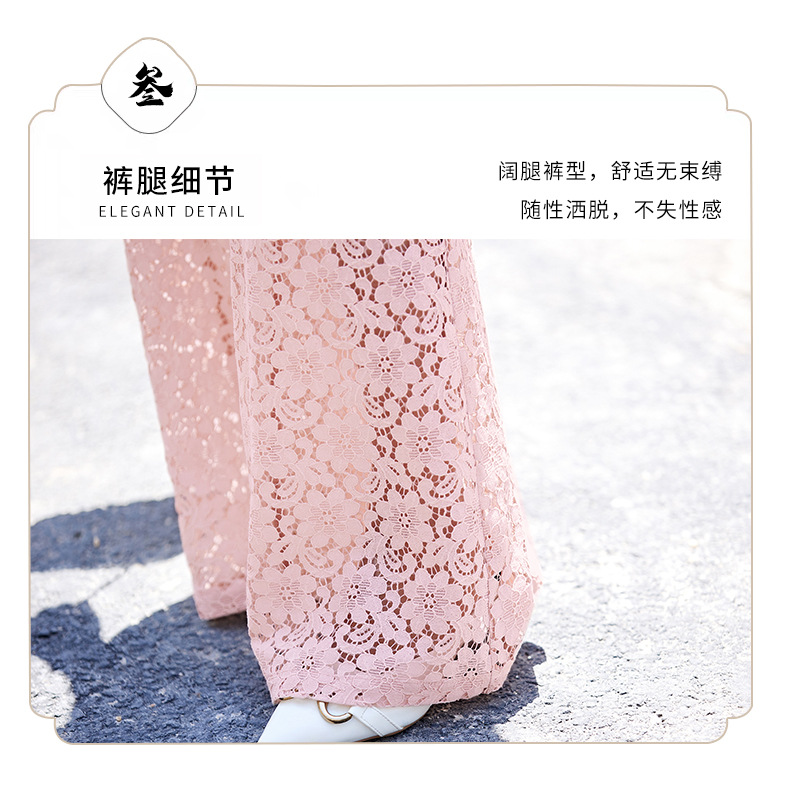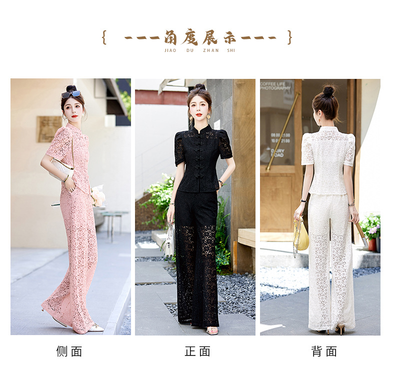 MDCJG2357休闲时尚套装女2023夏新款职业高级感新中式国风蕾丝阔腿裤两件套