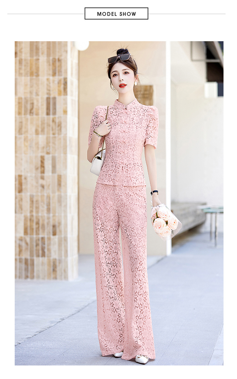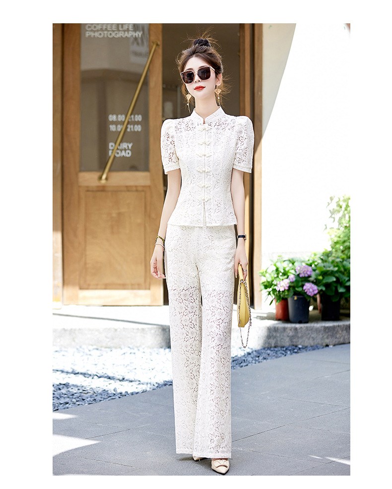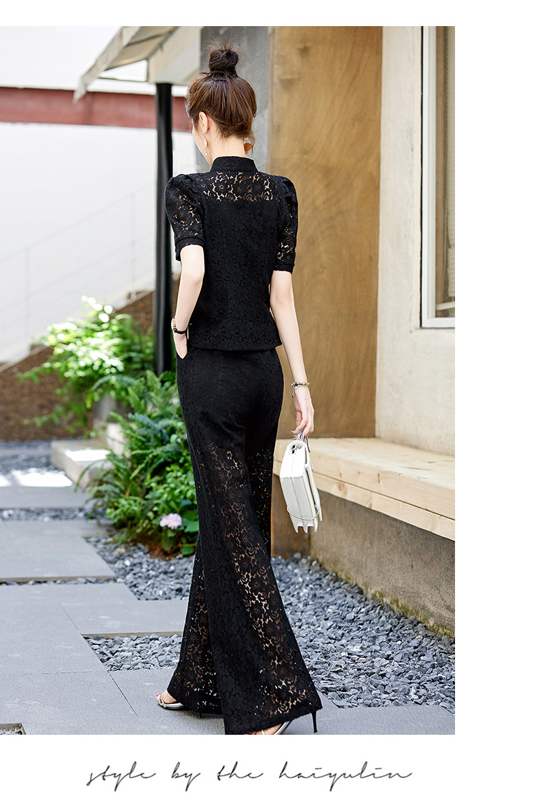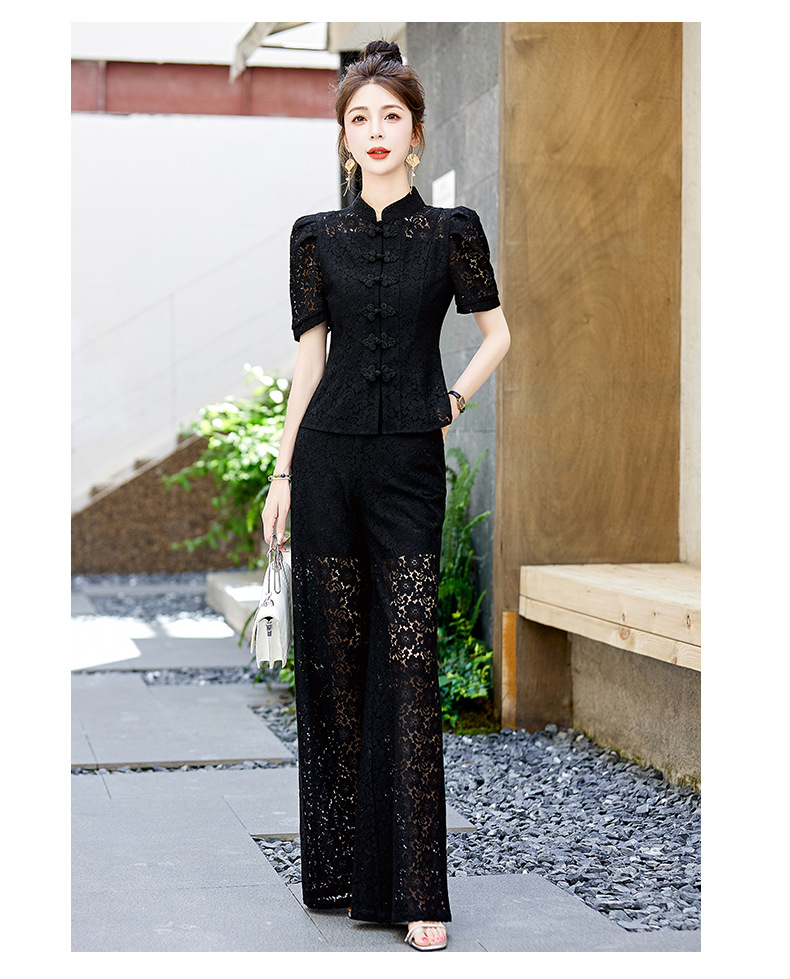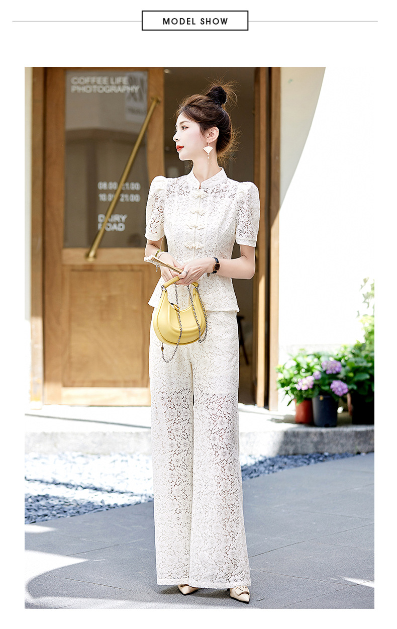 MDCJG2357休闲时尚套装女2023夏新款职业高级感新中式国风蕾丝阔腿裤两件套