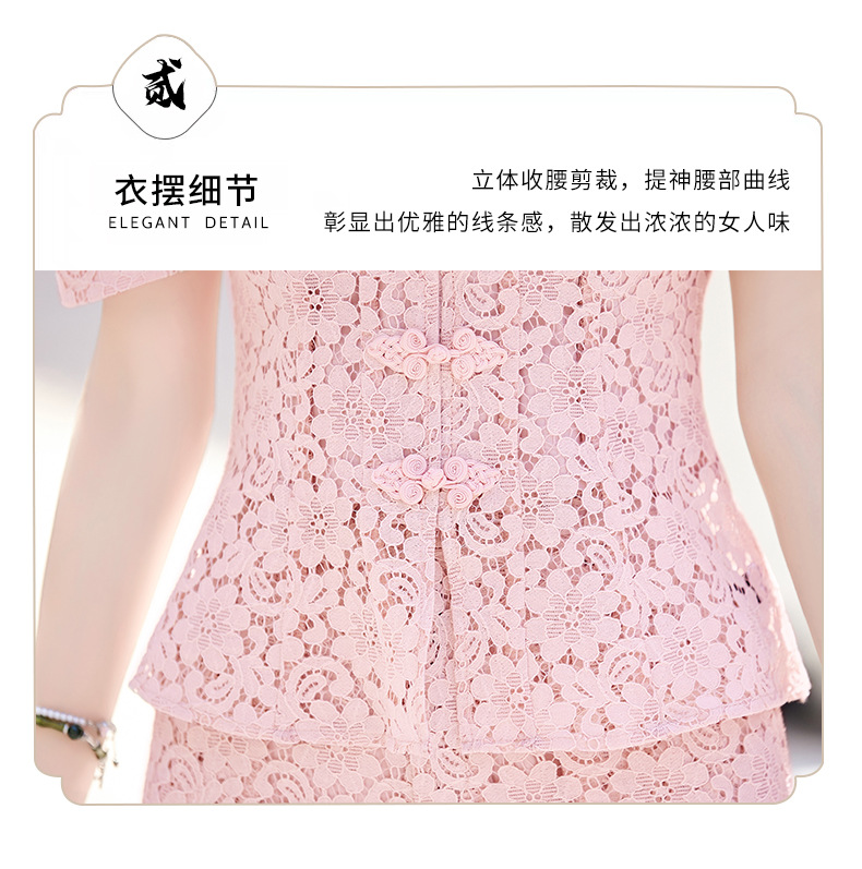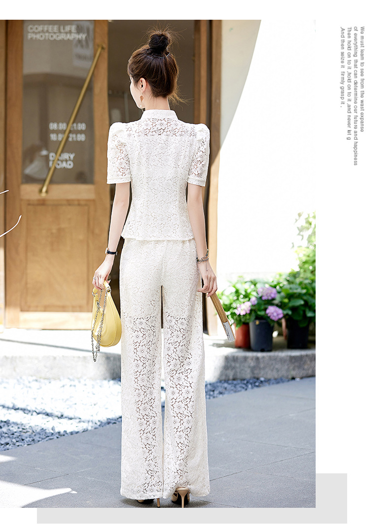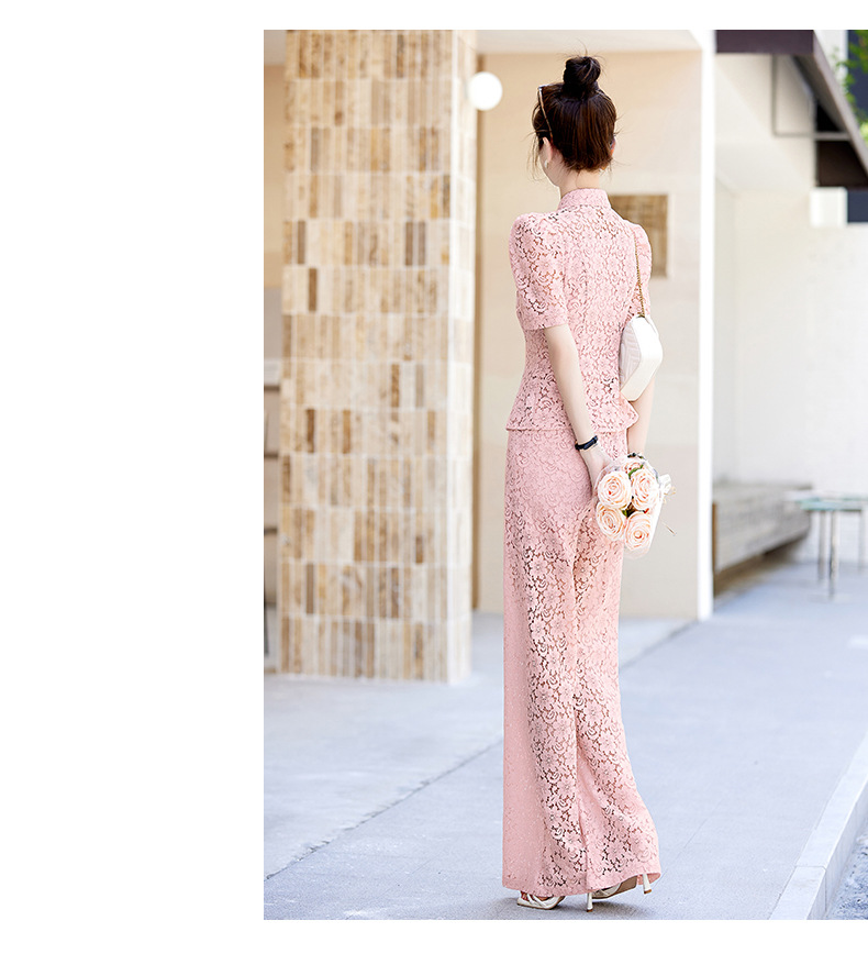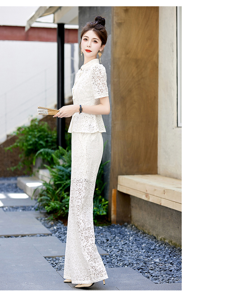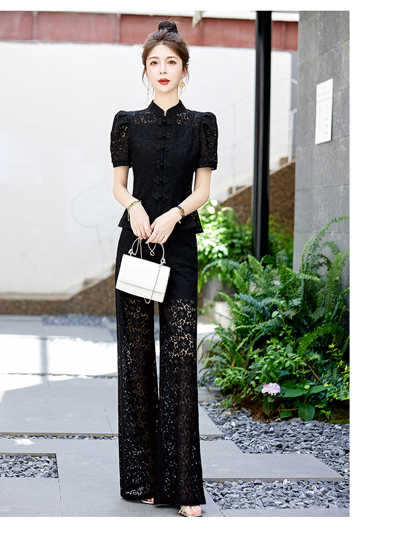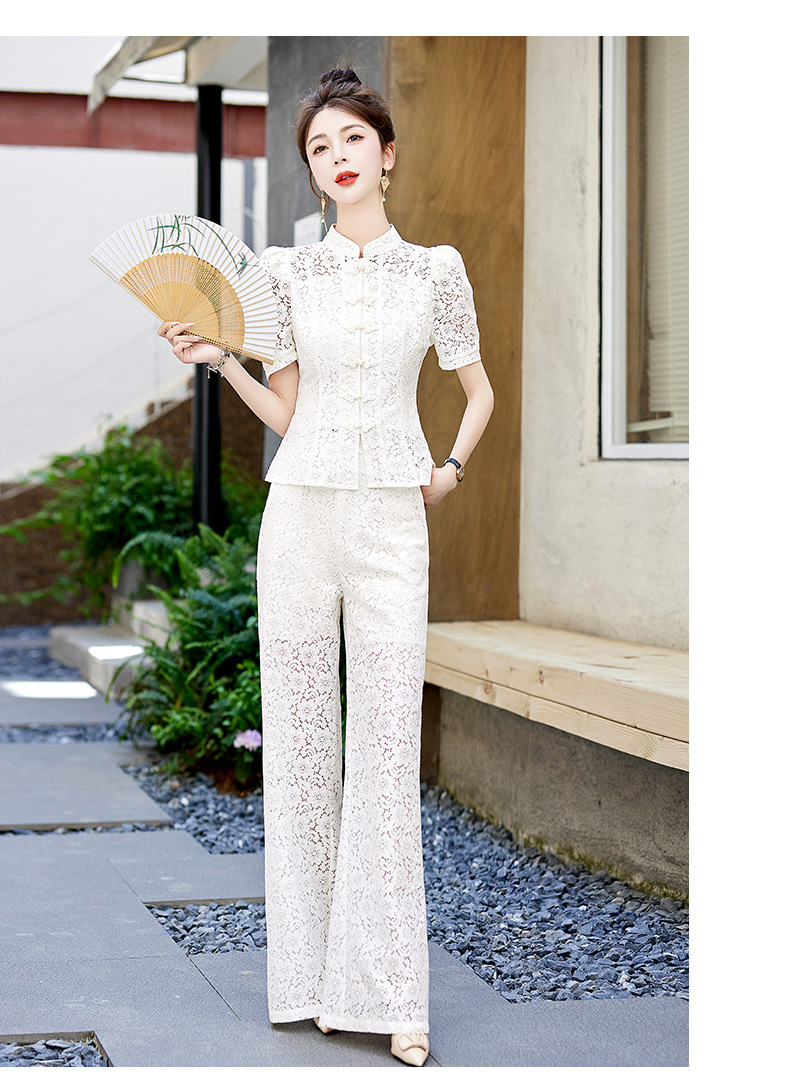 MDCJG2357休闲时尚套装女2023夏新款职业高级感新中式国风蕾丝阔腿裤两件套