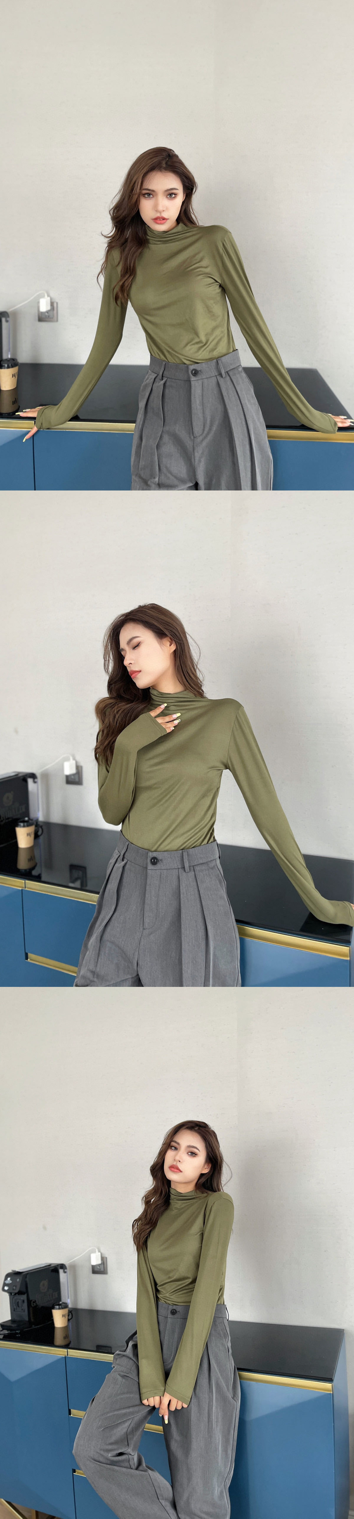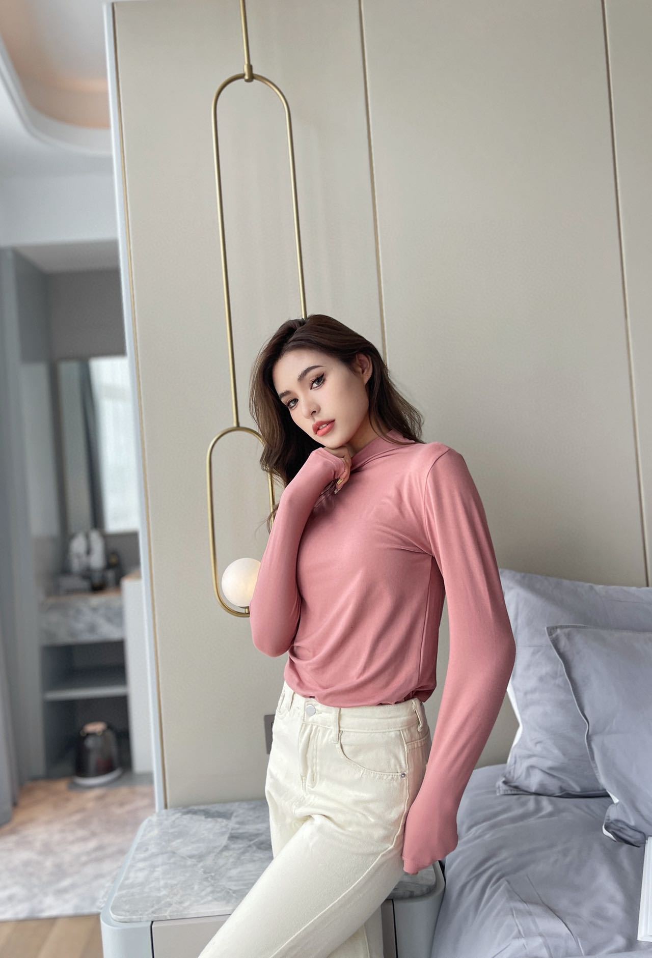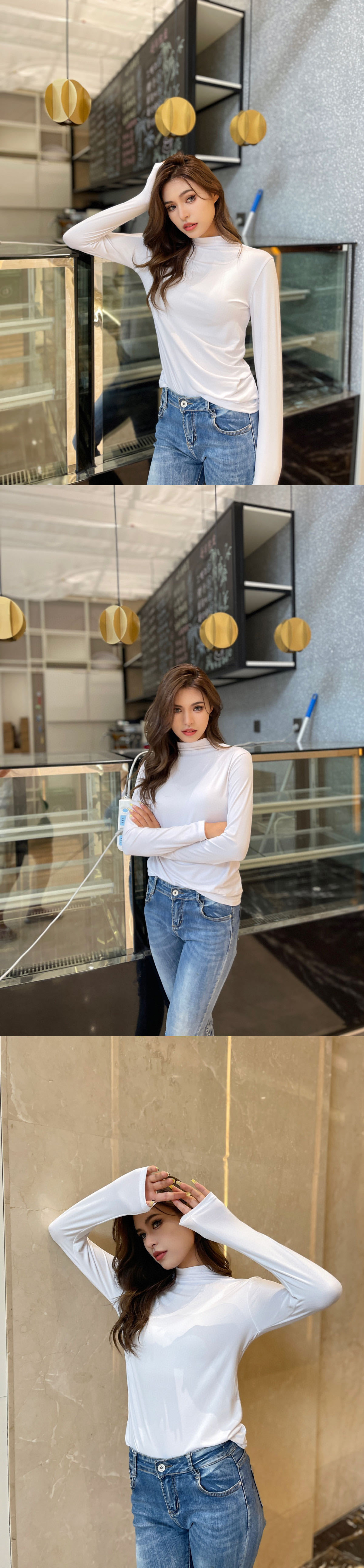 【69.9/任选5件!】无痕纯色打底衫新款,堆堆领上衣时尚养肤衣空调衫,防嗮衣慵懒宽松感-lm!